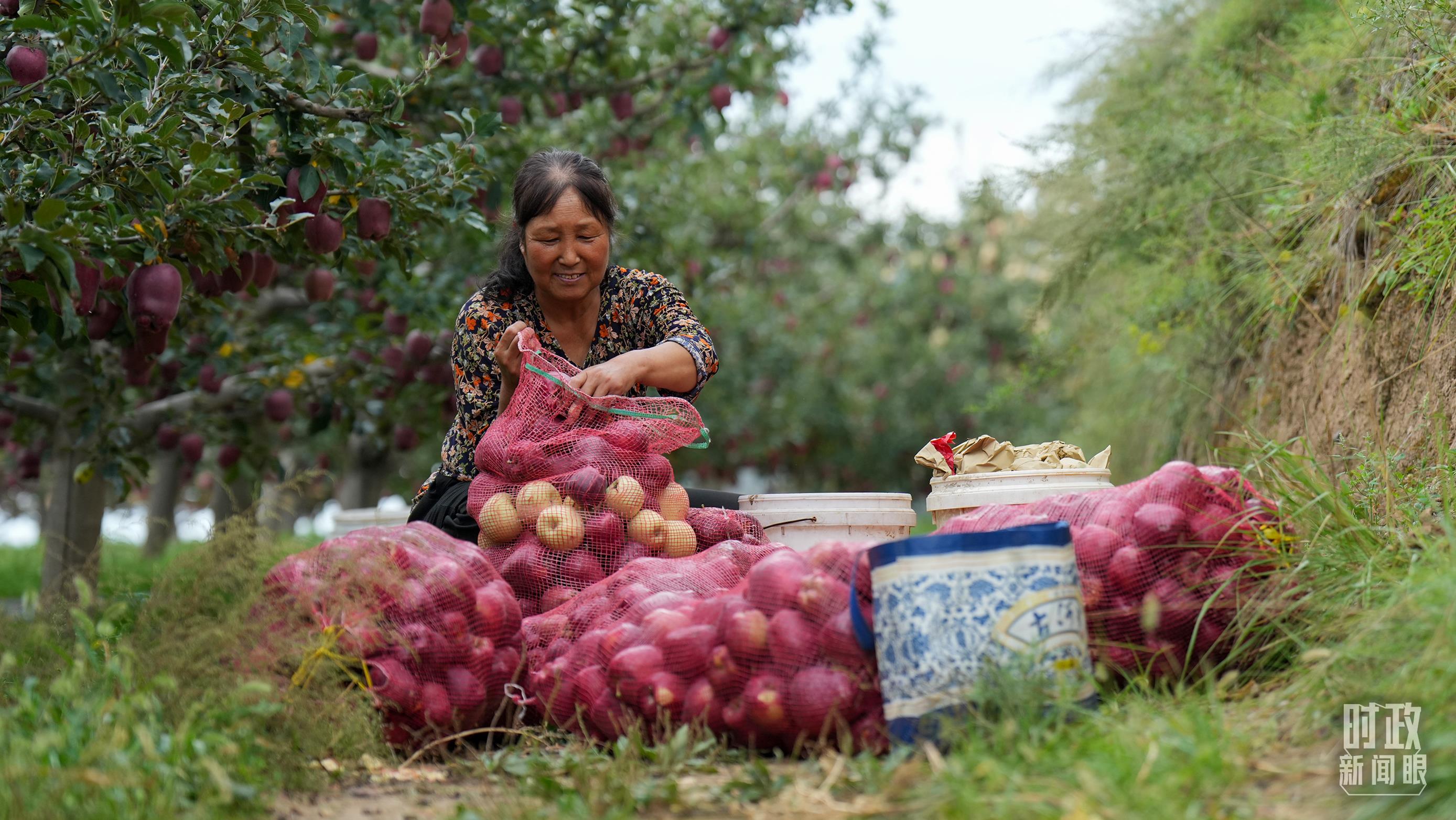 △南山花牛苹果基地在2023年带动9000多户村民实现增收。(总台国广记者李晋拍摄)