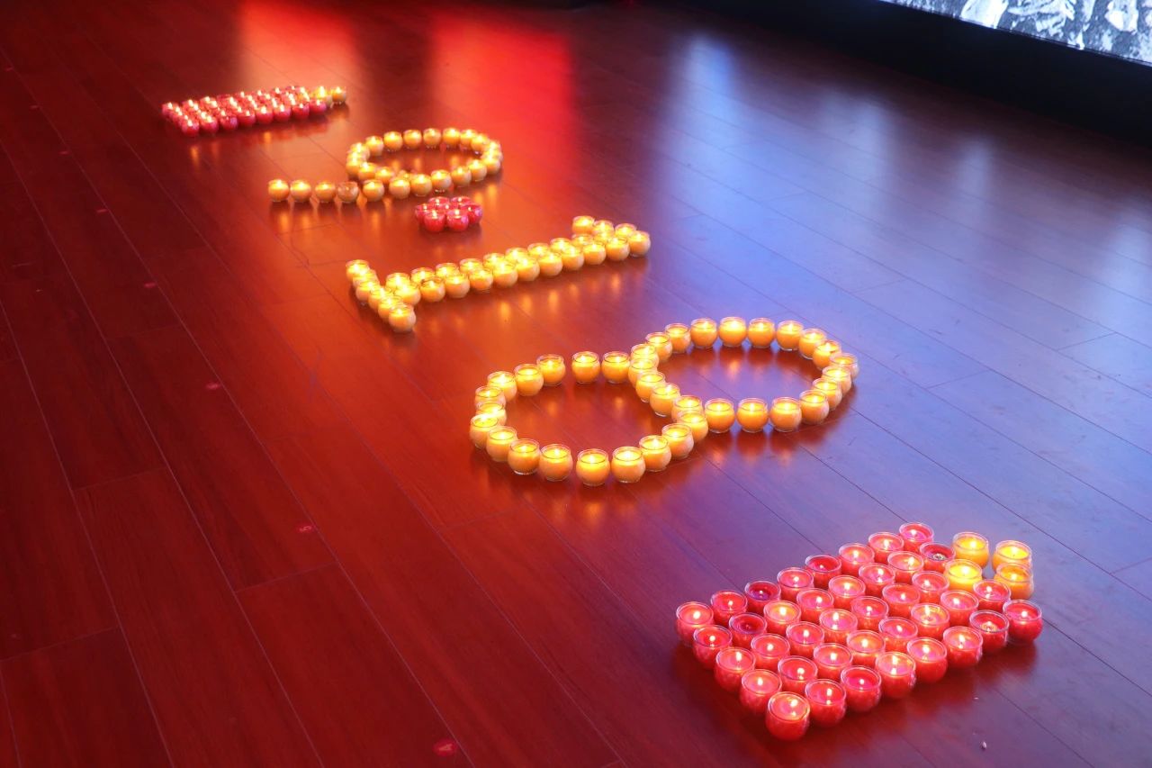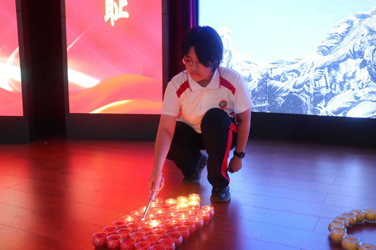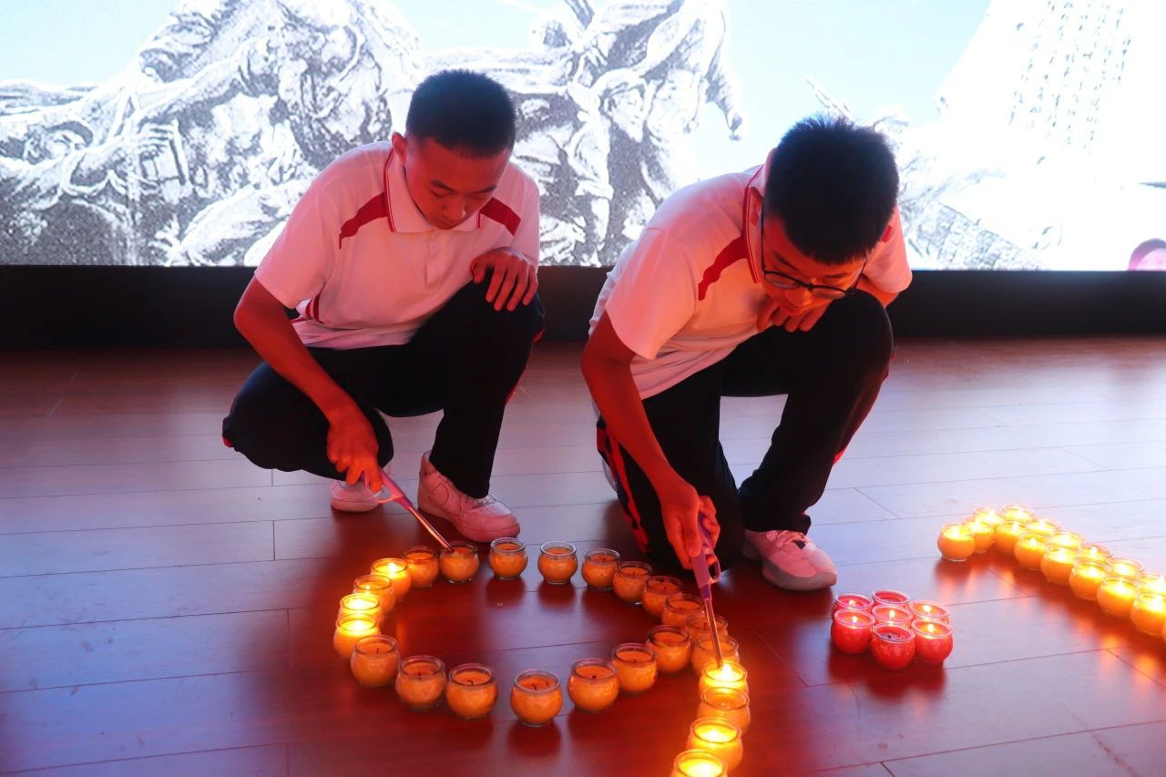 活动最后,同学们用蜡烛拼出了“9.18”的字样并点燃。在摇曳的烛光中,师生静默肃立,为“九一八”事变中牺牲的英烈默哀三分钟。