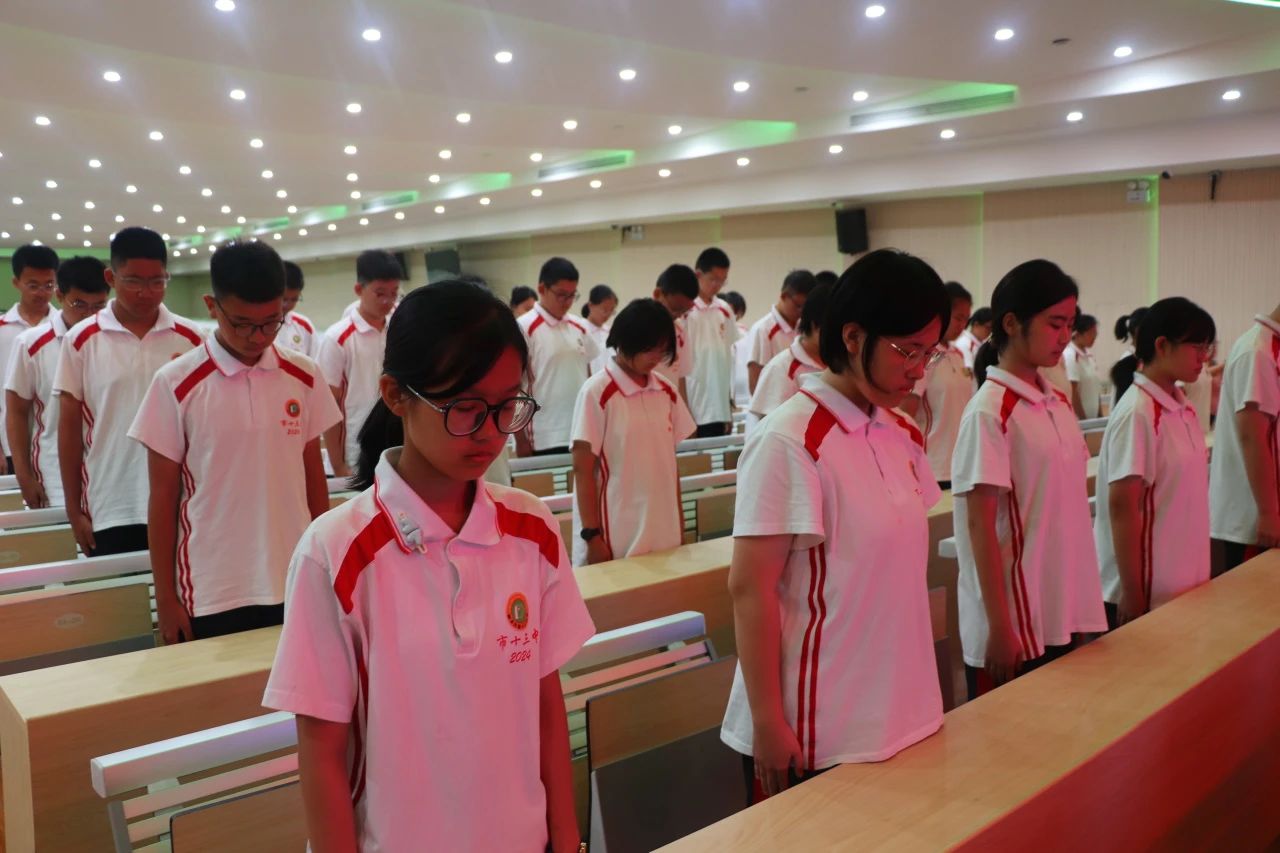 在领誓人的带领下,全体师生高举右拳,庄严宣誓:“铭记历史,不忘国耻;强我中华,吾辈有责!”誓言铿锵有力,展现了衡水十三中学子坚定的信念和昂扬的斗志。