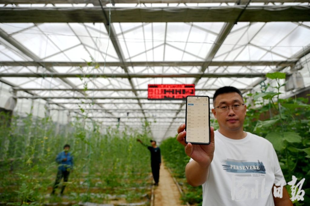 9月20日,河北绿园生态庄园农业开发有限公司管理员向记者展示手机上的智能温室控制系统。 焦磊摄