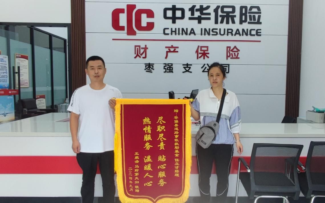 近日,中华财险枣强支公司收到了一面写有“尽职尽责、贴心服务,热情服务、温暖人心”的锦旗,受害人家属对中华财险救助基金承办人员任立才及时为其申请垫付道路交通事故社会救助基金表达感谢。