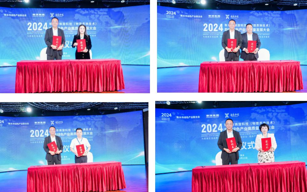 在接下来的签约仪式上,衡水市绿色产业联合会、衡水忠义餐饮集团、河北衡农良品供应链管理有限公司、广聚农业科技(衡水)股份有限公司分别与山东华渠集团签署战略合作框架协议。随着框架协议的签订,标志着联合会将重点依托华渠集团“物理质换技术”对我市农业种植、果蔬保鲜、餐饮食材提质、农副产品深加工物理性改良等进行科学对接,对我市乡村振兴、康养产业、餐饮消费、产业转型、科技赋能等方面具有划时代意义。