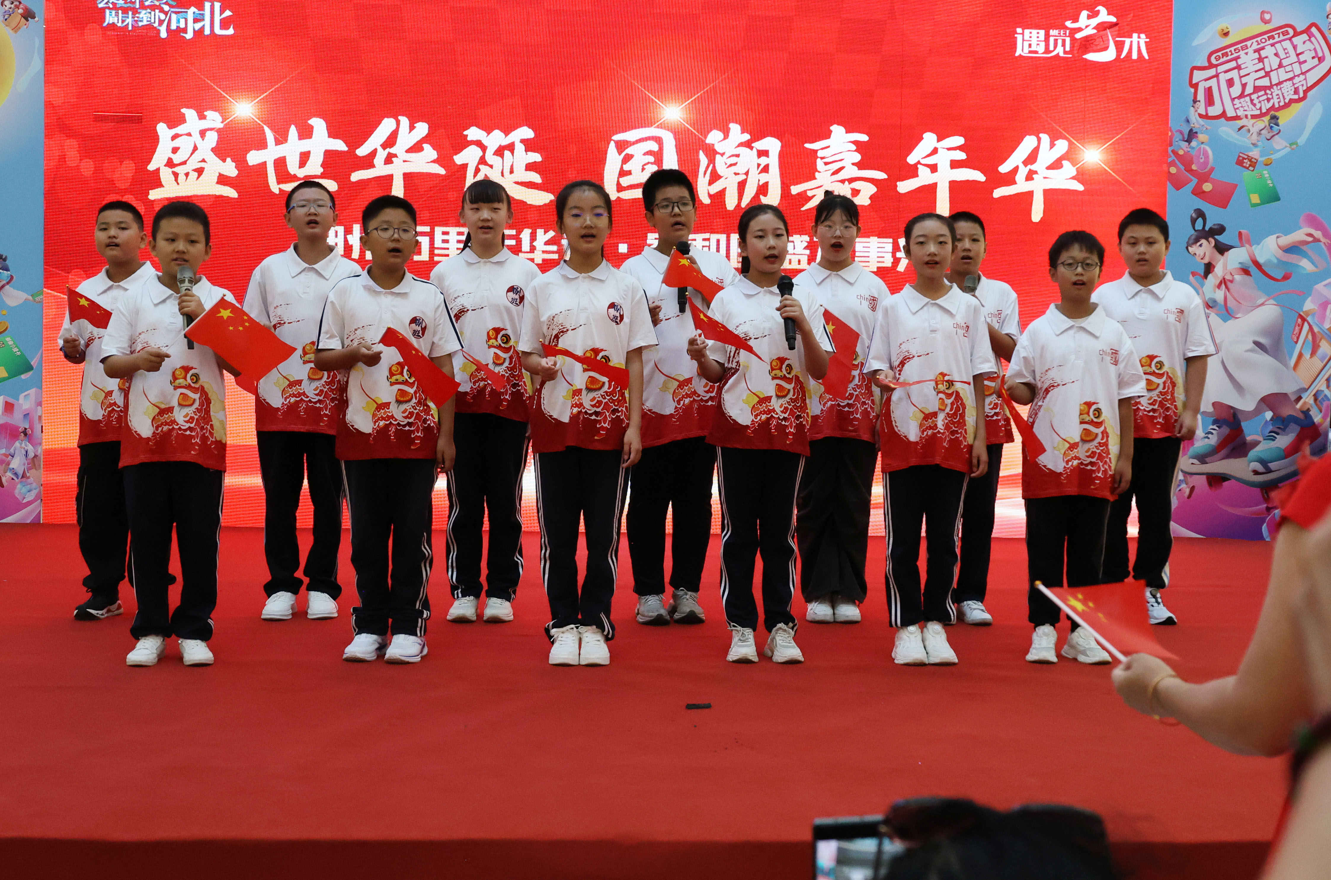 10月1日,由桃城区文化和旅游局、衡水市春晖义工协会艺术团主办的“盛世华诞 国潮嘉年华”百人合唱爱国歌曲贺国庆活动在衡水市区万达广精彩上演。