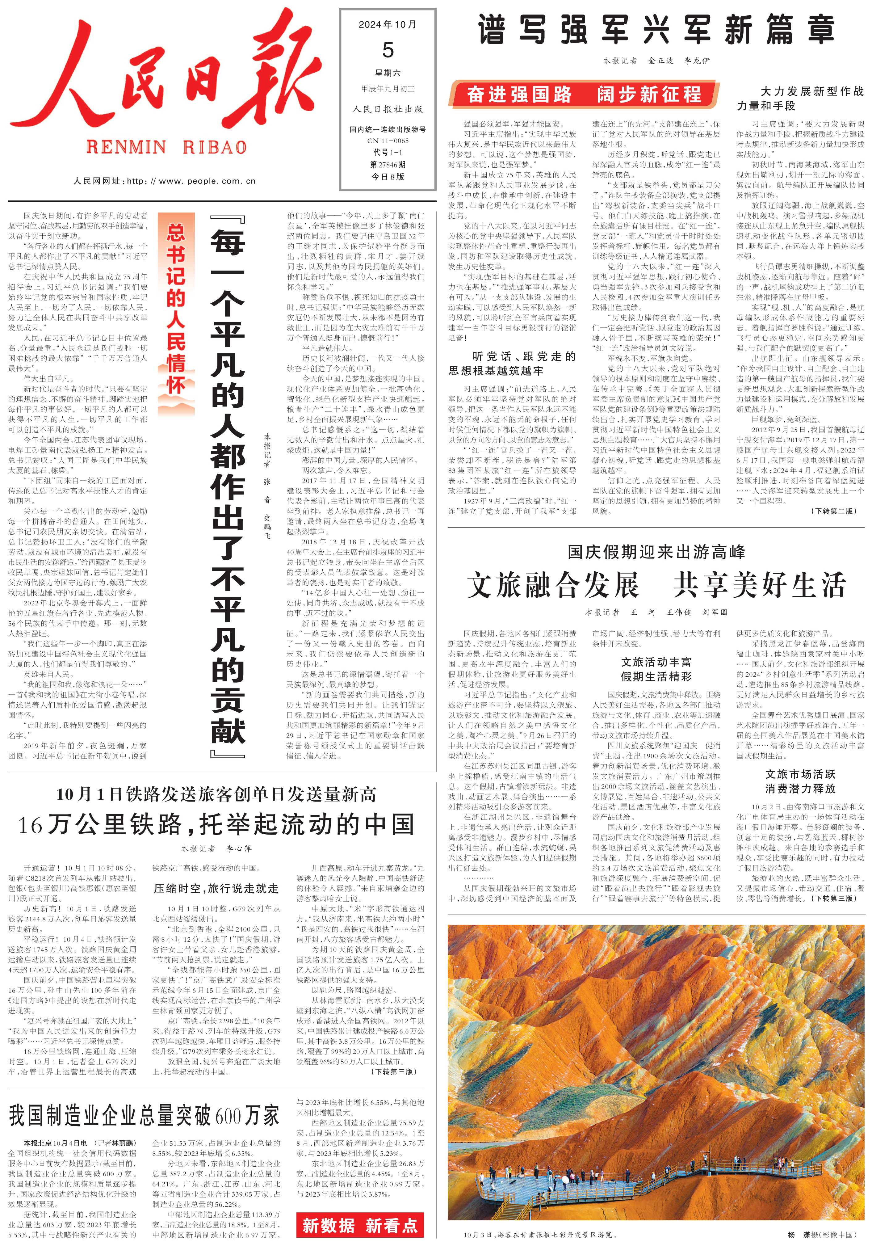 关心每一个辛勤付出的劳动者,勉励每一个拼搏奋斗的普通人。在田间地头,总书记同农民朋友亲切交谈。在清洁站,总书记赞扬环卫工人:“没有你们的辛勤劳动,就没有城市环境的清洁美丽,就没有市民生活的安逸舒适。”给西藏隆子县玉麦乡牧民卓嘎、央宗姐妹回信,总书记肯定她们父女两代接力为国守边的行为,勉励广大农牧民扎根边陲,守护好国土,建设好家乡。