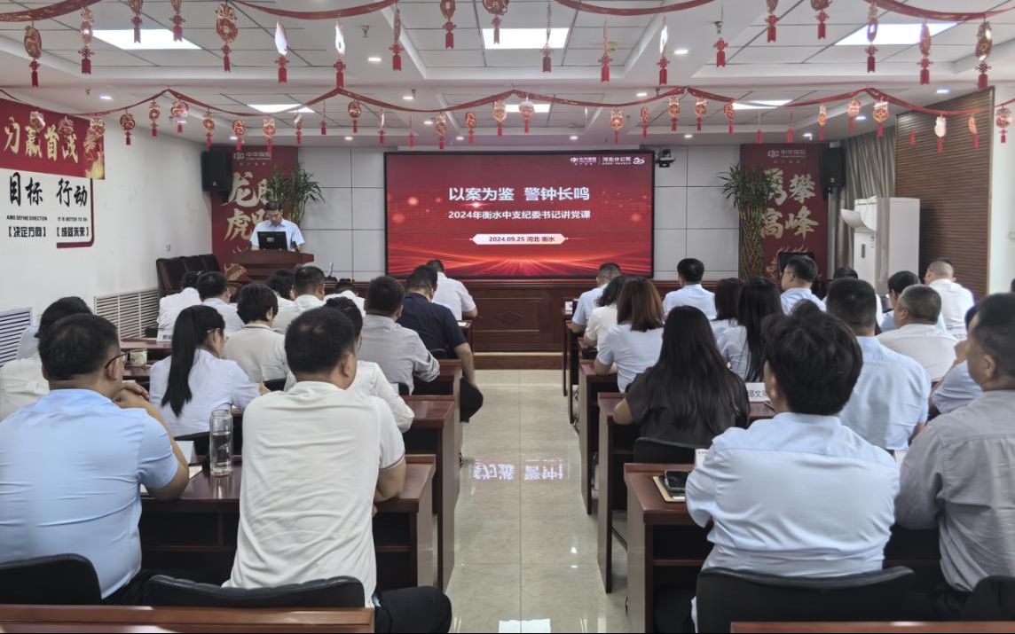 9月25日,中华财险衡水中支纪委书记周双刚以《以案为鉴,警钟长鸣》为题,为全体党员干部讲授廉洁党课。
