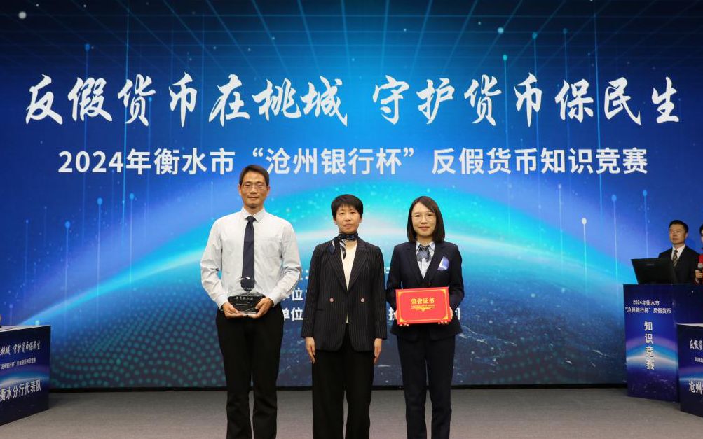 竞赛分为初赛和决赛两个阶段,初赛有三十一支金融机构队伍参加,9月20日经过紧张的线上答题,六家银行脱颖而出,晋级决赛。决赛设置了个人必答题、团队必答题、抢答题、风险题四个环节,比赛内容围绕人民币鉴别、假币收缴、鉴定以及残缺污损人民兑换等反假货币知识进行,经过激烈的角逐,最终沧州银行衡水分行代表队获得“团体二等奖”,同时作为协办单位,该行积极筹备,助力活动圆满成功,荣获“优秀组织奖”。