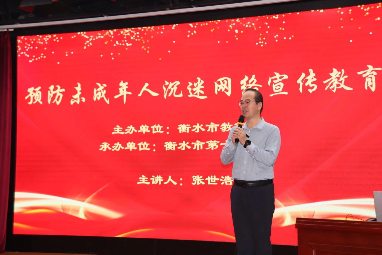 为引导广大中学生科学认识、正确对待、合理使用网络,有效预防未成年人沉迷网络游戏及网上过度消费等不良行为,近日,衡水市教育局2024年预防未成年人沉迷网络宣传教育活动在衡水十三中开展,衡水日报社家庭教育中心主任张世浩受邀为学生作主题报告。