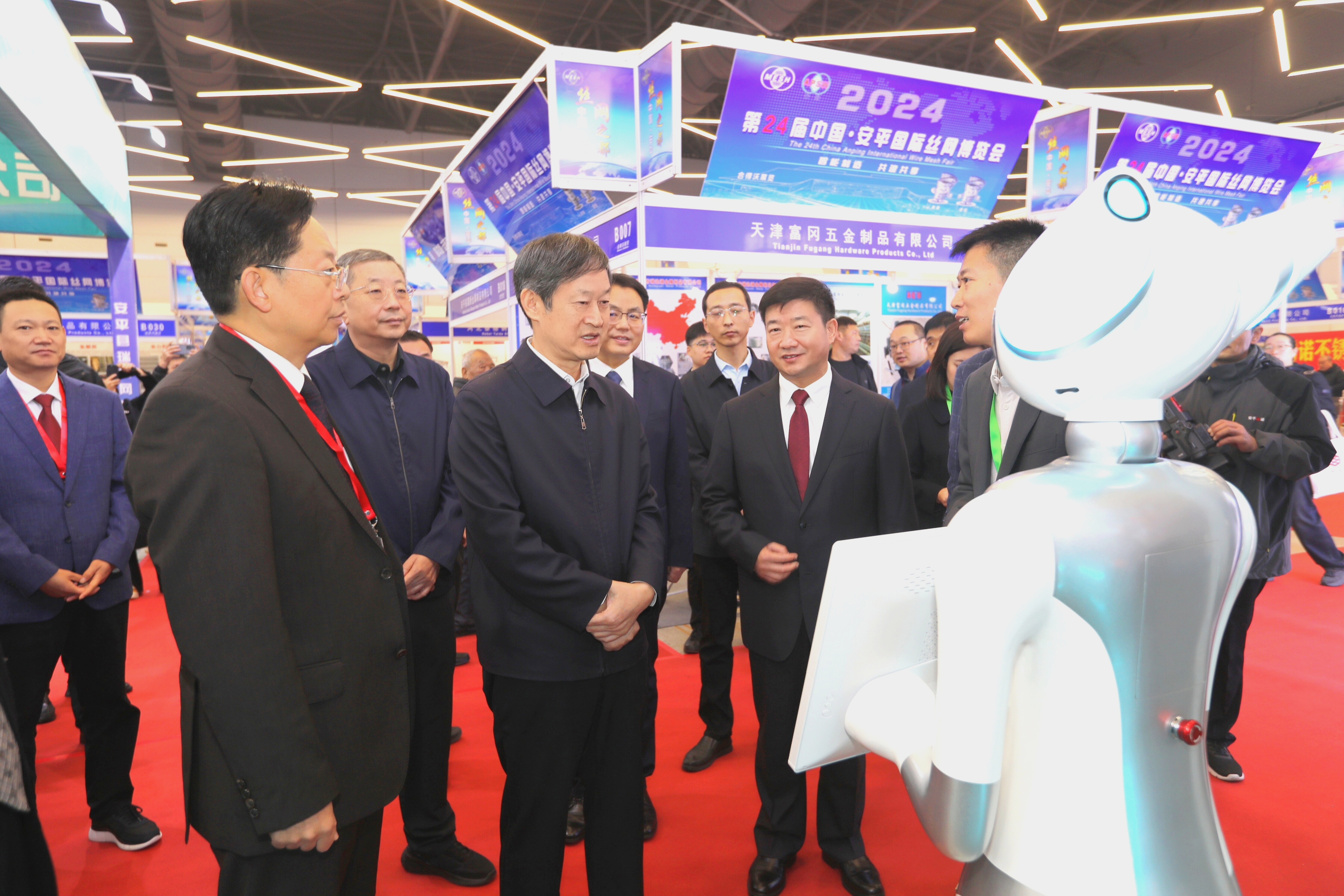 吴晓华一行先后到特装展区、产品展区和机械设备展区,与参展企业负责人深入交流,详细了解丝网行业新产品、新装备、新技术、新工艺,鼓励企业继续以科技创新为引领,加大产品研发力度,提升生产工艺水平,发展共享工厂、共享车间,加快“智改数转网联”步伐,拓展垂直大模型应用场景,推动丝网产业向高端化、智能化、绿色化方向迈进。希望参展企业借助丝网博览会这一平台,充分展示丝网产业发展的最新成果,加强与国内外客商的合作交流,实现优势互补、互利共赢。