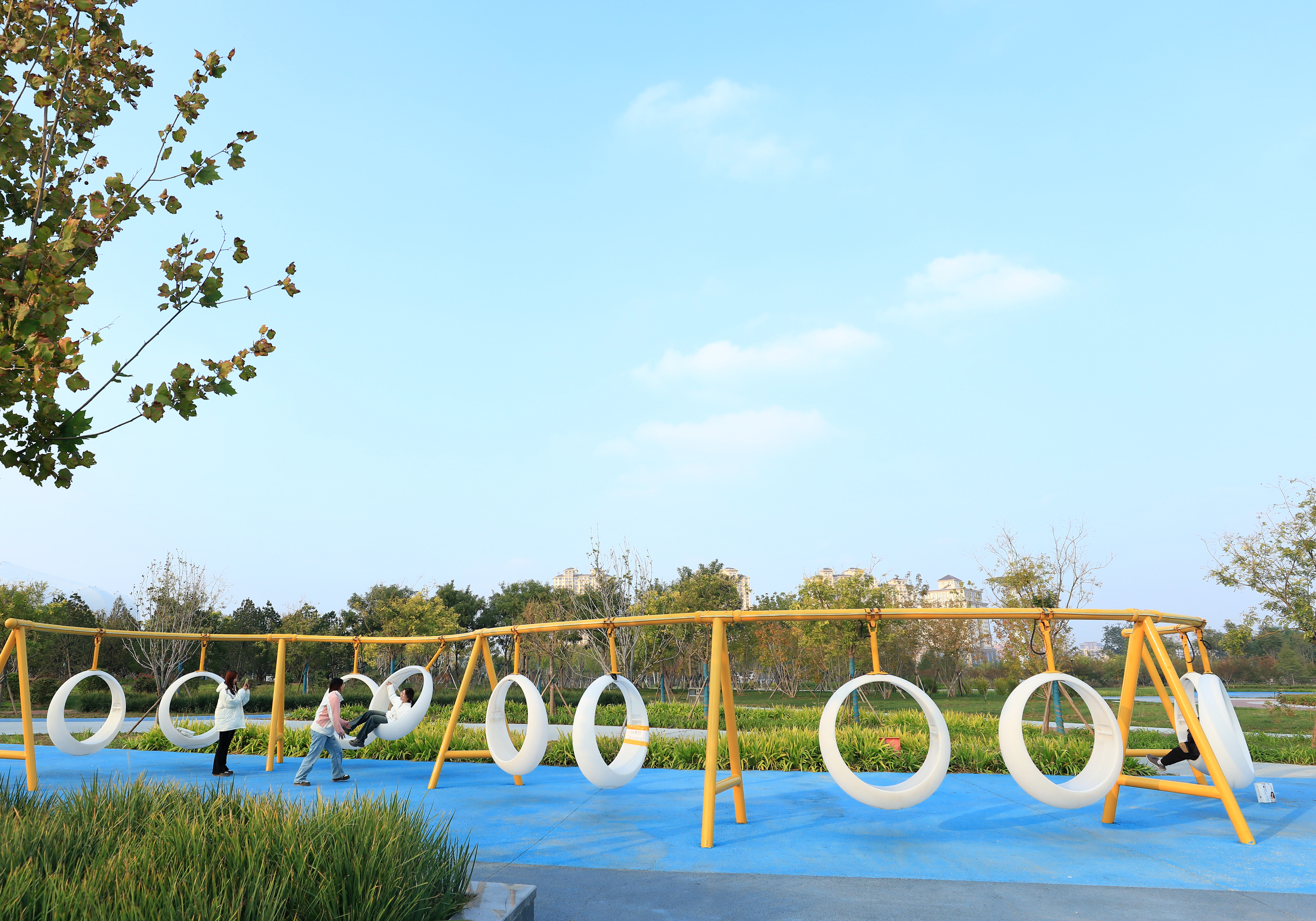 公园以全民健身为主,园内设有绿地休闲、健步、智慧运动、智能器械锻炼、儿童娱乐、初级轮滑等运动场地,进一步补齐全民健身场地设施的“短板”,充分激发全民运动热情,让休闲、健身、运动更具互动性。花廊下携手散步的夫妻闲谈着话语,乒乓球场上同伴你来我往攻防转换激烈,儿童娱乐设施上孩子的欢声清脆活泼……