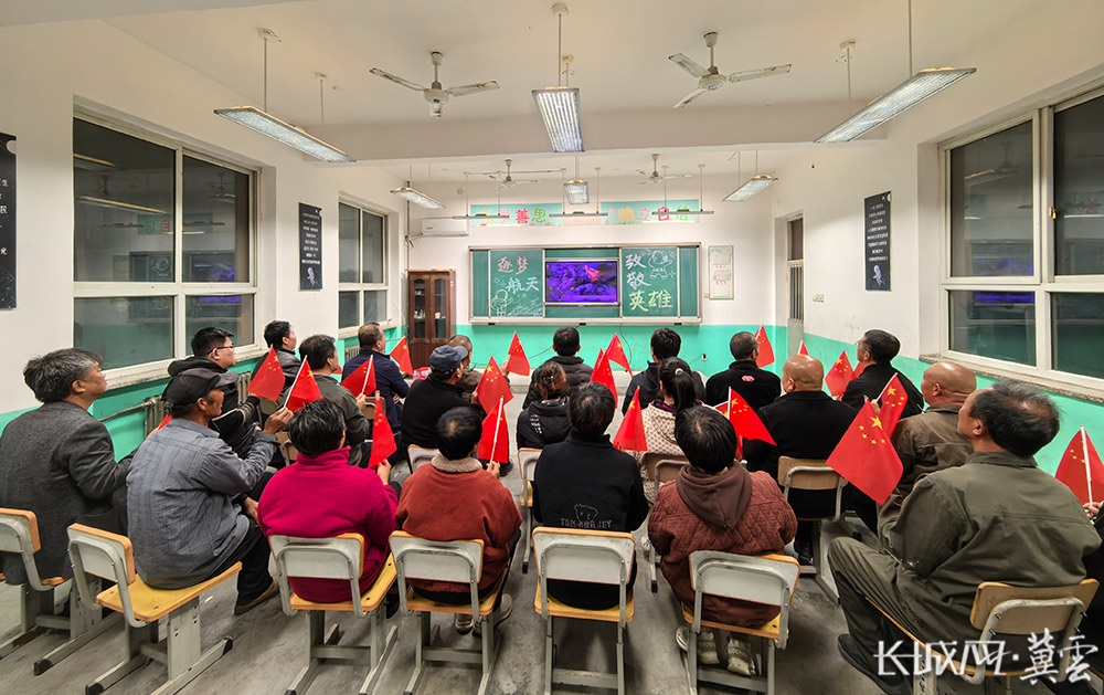 在蔡旭哲的母校,蔡张村的党员干部们聚集在教室,观看直播。随着飞船发射的画面播出,全场响起了热烈的掌声。大家挥舞着国旗,为蔡旭哲加油。当年从这里走出去的大男孩,已成为全校学生的偶像。