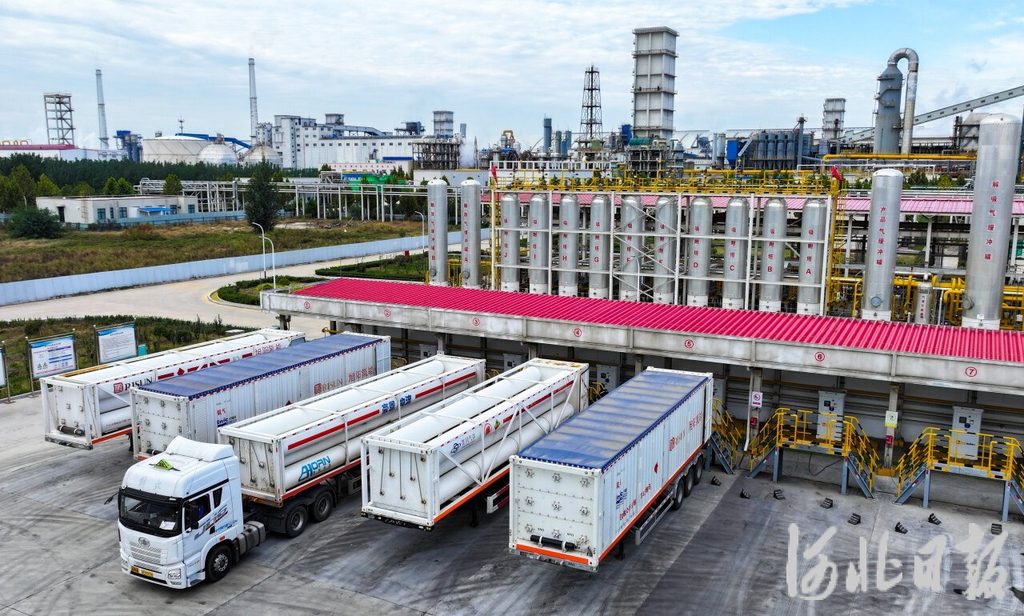 10月24日,走进旭阳集团定州园区的氢气提纯及充装全自动生产车间,只见氢气充装站前,一辆辆发往北京、保定、石家庄等地的氢气管束车正在充装柱前充装压缩氢气。