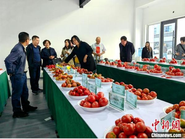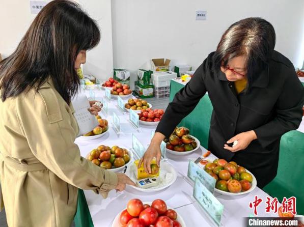 11月3日,评委们对番茄外观进行评审。 王天祥 摄