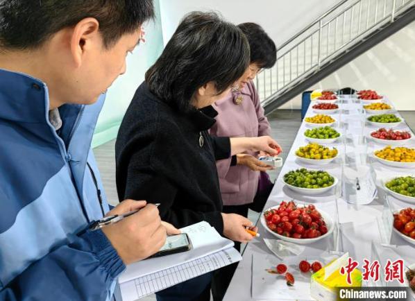 11月3日,番茄大赛樱桃番茄果组,专家评委们在检测评审。 王天祥 摄