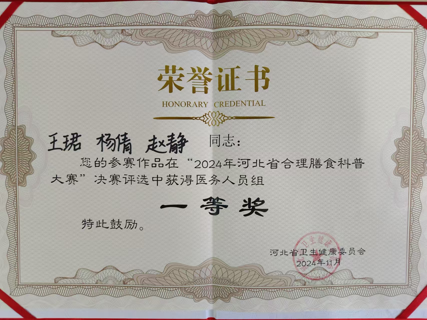 围绕全省卫生健康中心工作,以群众营养健康需求为导向,以医护人员和营养指导员讲科普为抓手,11月10日,由河北省卫生健康委员会主办,河北省营养师服务协会、河北省广播电视台协办的“河北省合理膳食科普大赛”在石家庄举行,衡水五院三名选手凭借出色的表现,获得两个奖项!