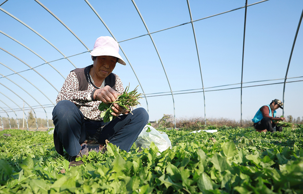 “家人们看看新鲜的蒲公英今天特价,生吃蘸酱、做馅包包子、炒鸡蛋嘎嘎好吃……”日前,在阜城县王集乡康蔬家庭农场里,新农人于忠英拿着手机正在直播带货,一棵棵蒲公英长势旺盛,工人们正忙着采挖。