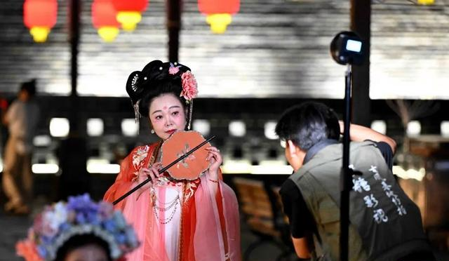 行走在古城街头,不论春夏秋冬,总会看到身着汉服、头梳发髻的少女,步履轻盈,欢声笑语,结伴而行。隆兴寺、广惠寺的红墙,充当了古装少女拍照打卡的背景板。尤其是每当夜幕降临,华灯初上,薄暮夜色中,古寺红墙边聚集起众多古装少女,或半遮羞面,或轻摇罗扇,或轻拈兰花。“咔咔咔”,摄影师轻按快门,定格下了众生美。