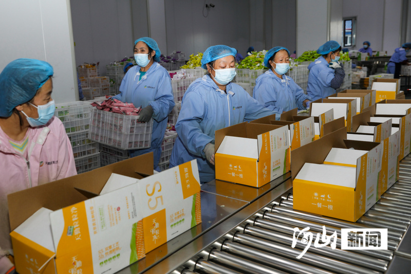 智能化标准生产线上,又是另一番场景。在常温玉米灭菌车间,分拣削切的玉米经锁鲜技术处理后,被推入蒸煮罐内进行杀菌,经过一小时高温蒸煮,从粒到芯实现真正的灭菌。眼下虽不是玉米收获期,包装车间里却忙碌非常,十几名工人将真空包装的甜糯玉米,熟练分类、平台划分、打包装箱、贴单分拣……