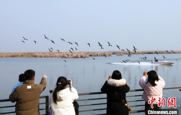 衡水湖“鸟浪”席卷天际 万鸟齐飞勾勒生态奇观