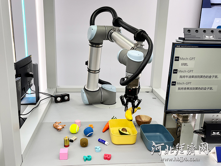 Mech-GPT多模态大模型,机器人在语音指令下精准抓取。河北经济日报记者 刘朋朋 摄