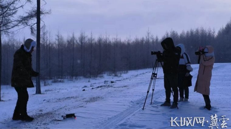 还记得我们在2023年拍摄省级重点纪录片选题项目《影像天地人》的时候,苦难重重。我们要面对起早贪黑的拍摄节奏,要面对零下30多度冰雪的极寒天气。当时我们在塞罕坝拍摄雪景,这是我第一次感觉到鹅绒服穿在身上像纸糊的。我的摄像,拍摄不到五分钟双手就冻僵了,他基本是不敢戴手套的,因为手套会影响他操控机器的手感,可明明他的手早就按不动机器了。
