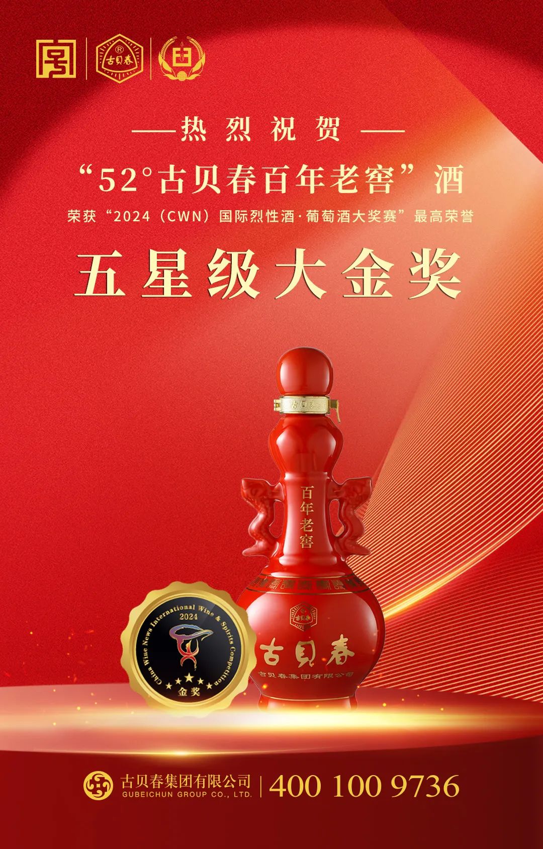 此次摘得(CWN)国际烈性酒·葡萄酒大奖赛五星级大金奖的“古贝春百年老窖”,是古贝春集团的匠心之作,凝聚着中国白酒酿造技艺的千年智慧与现代创新工艺的完美融合。传承古法纯粮固态酿造工艺,精选五粮发酵,经中国白酒泰斗周恒刚老前辈指导,精心调制而成。该酒具有酒体细腻、浓香醇厚、甘美净爽、各味协调、回味悠长的风格特点。上市二十年来,古贝春百年老窖历经市场的重重考验,已然成为古贝春集团的标志性经典产品,在鲁酒品牌中占据重要地位,成为宴席名酒,收获了广大消费者的青睐和赞誉。古贝春集团在大赛中技压群雄,拿下大赛的最高荣誉,获得专家评委的高度认可绝非偶然。早在1991年斩获“布鲁塞尔世界优质产品评选大赛金奖”后,古贝春酒先后五次荣获国际赛事金奖。古贝春百年老窖系列酒也多次荣获国内外殊荣,联合国千年金奖,中国国际酒业博览会青酌奖、2005年在全国浓香型白酒质量鉴评中摘金夺银等重磅荣誉纷至沓来。累累硕果,不仅是业界对古贝春品质的权威认定,更是古贝春集团一路坚守品质初心,精益求精的有力见证。