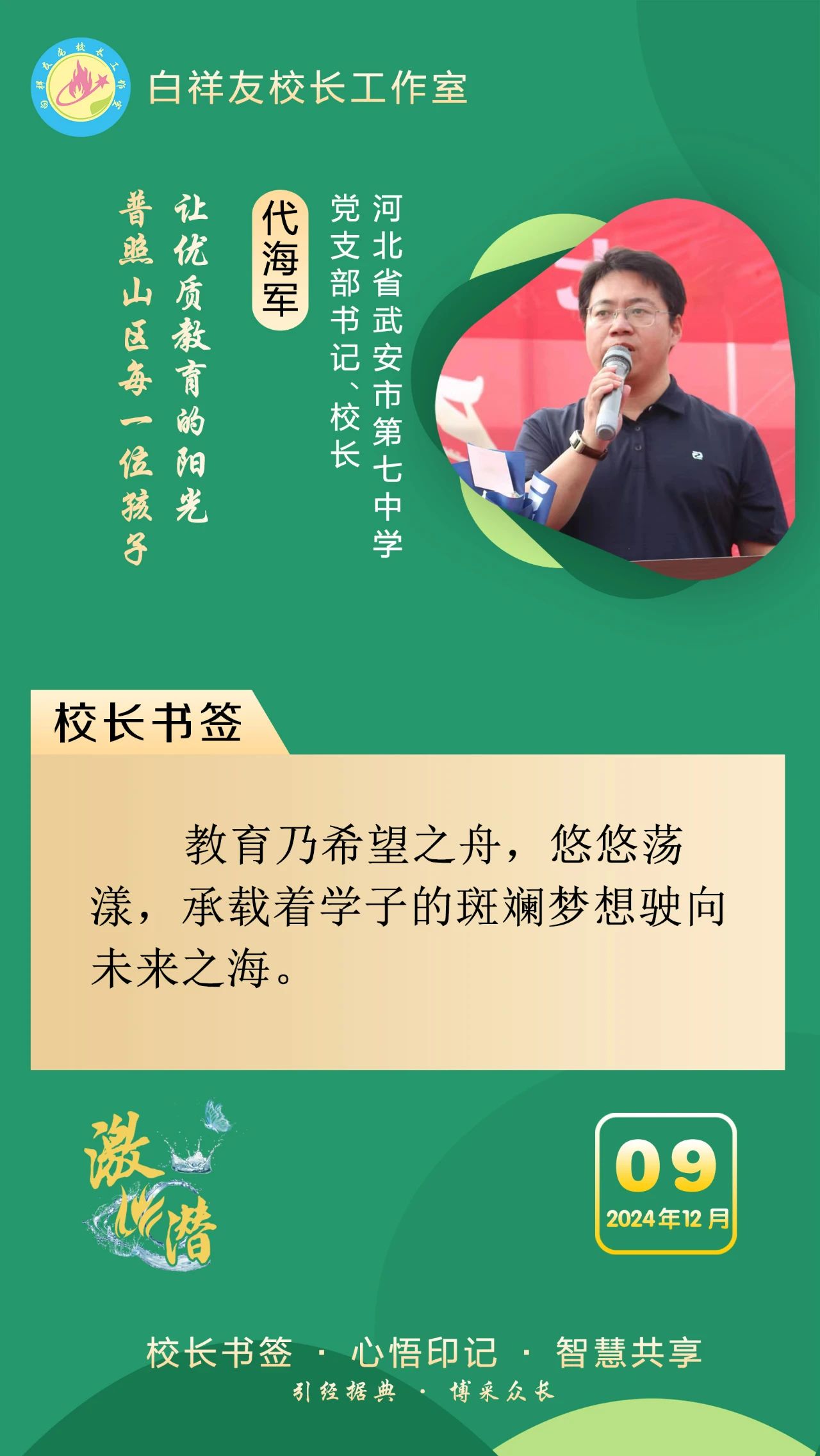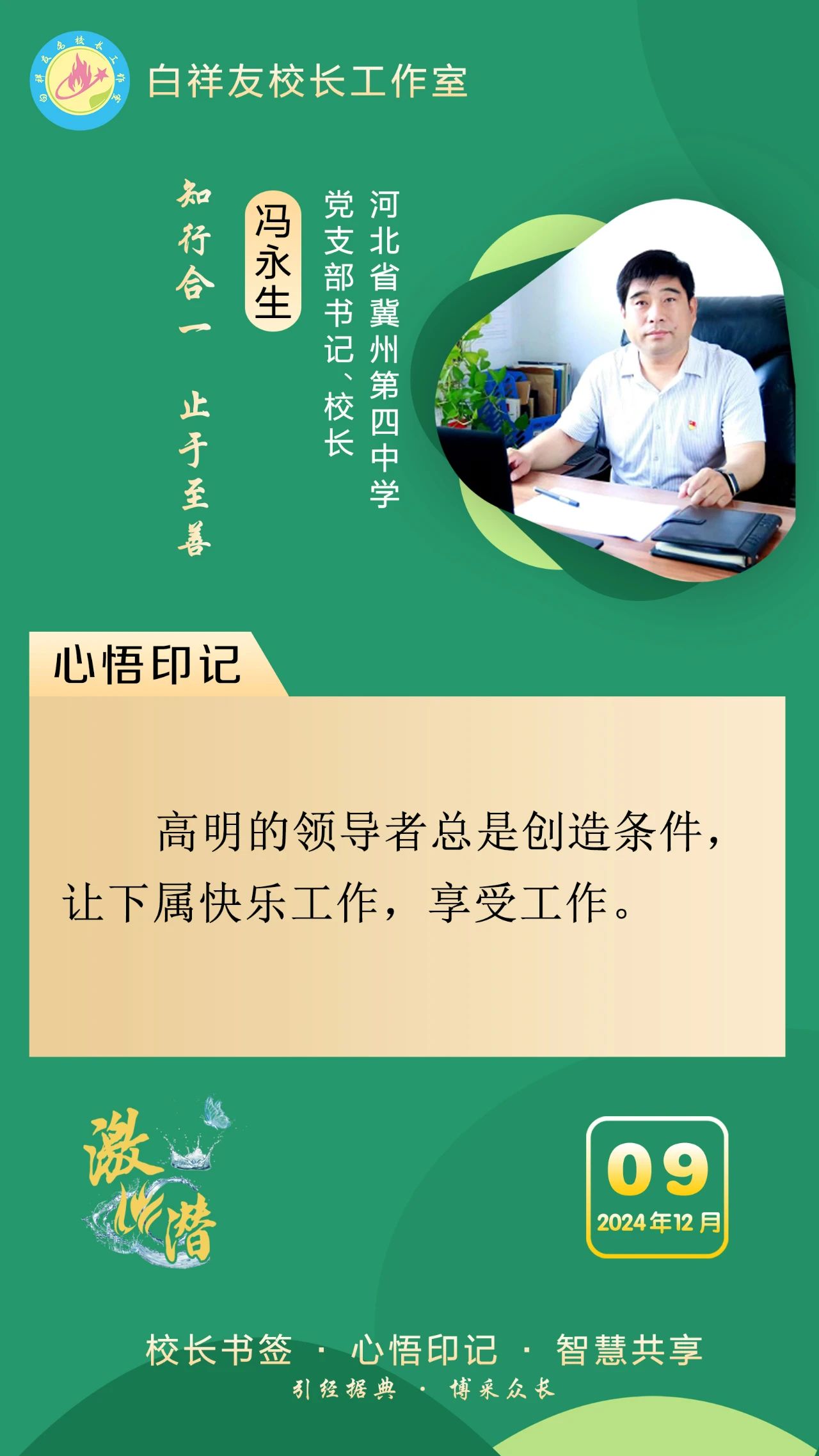 “白祥友校长工作室”成立于2019年4月,是教育部“国培计划”中小学名校长领航工程、河北省首批名校长工作室,目前省内外成员校48个。工作室坚持“资源共享、智慧共融、互助共赢”理念,已成为思想碰撞的交流场,资源共享的品牌站,成果展示的辐射源。