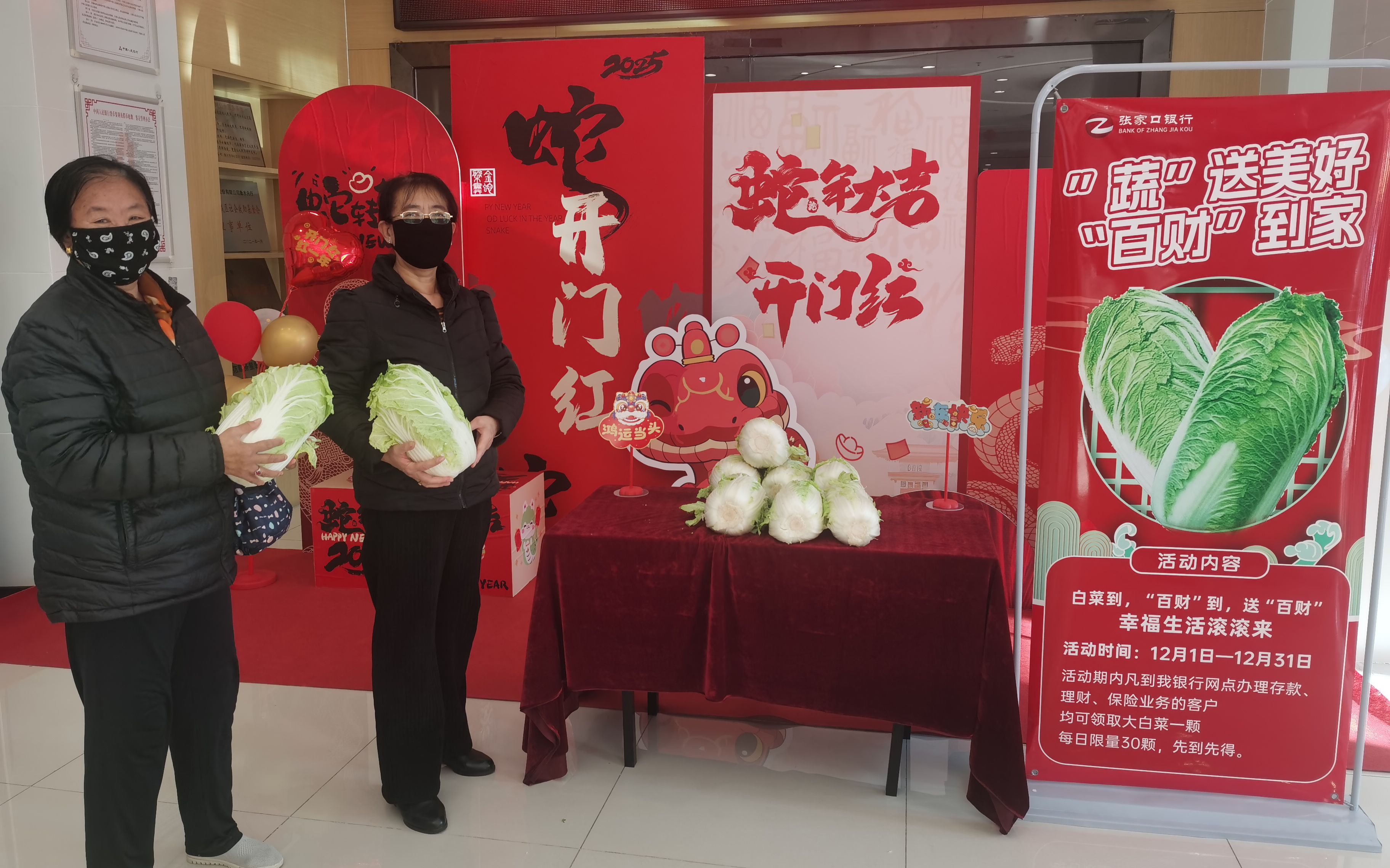 为回馈广大客户关怀、关爱,近日,张家口银行衡水分行营业部开展了“冬日送白菜,情暖客户心”活动,为广大客户送上一份份新鲜的白菜与新年的祝福。