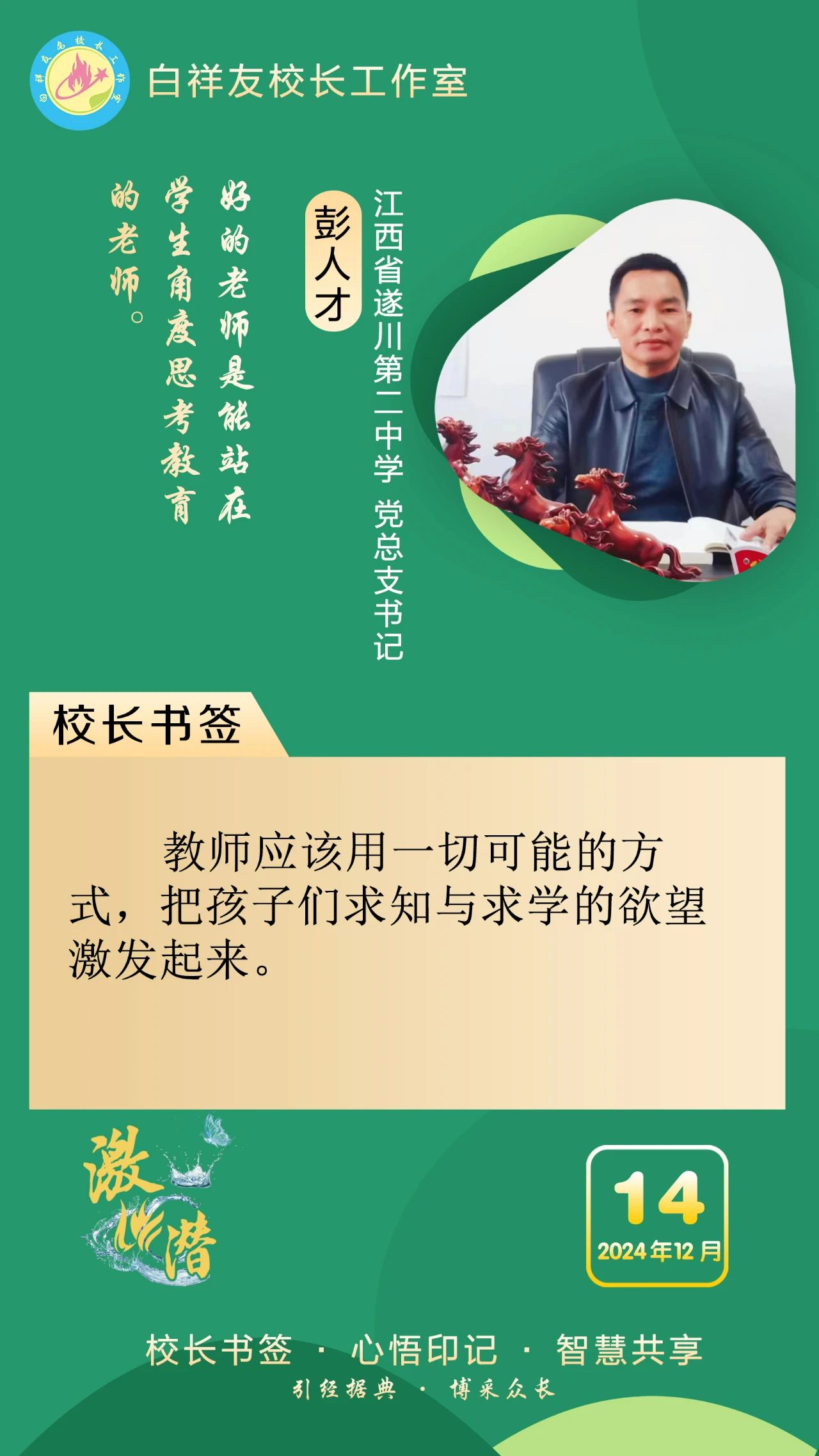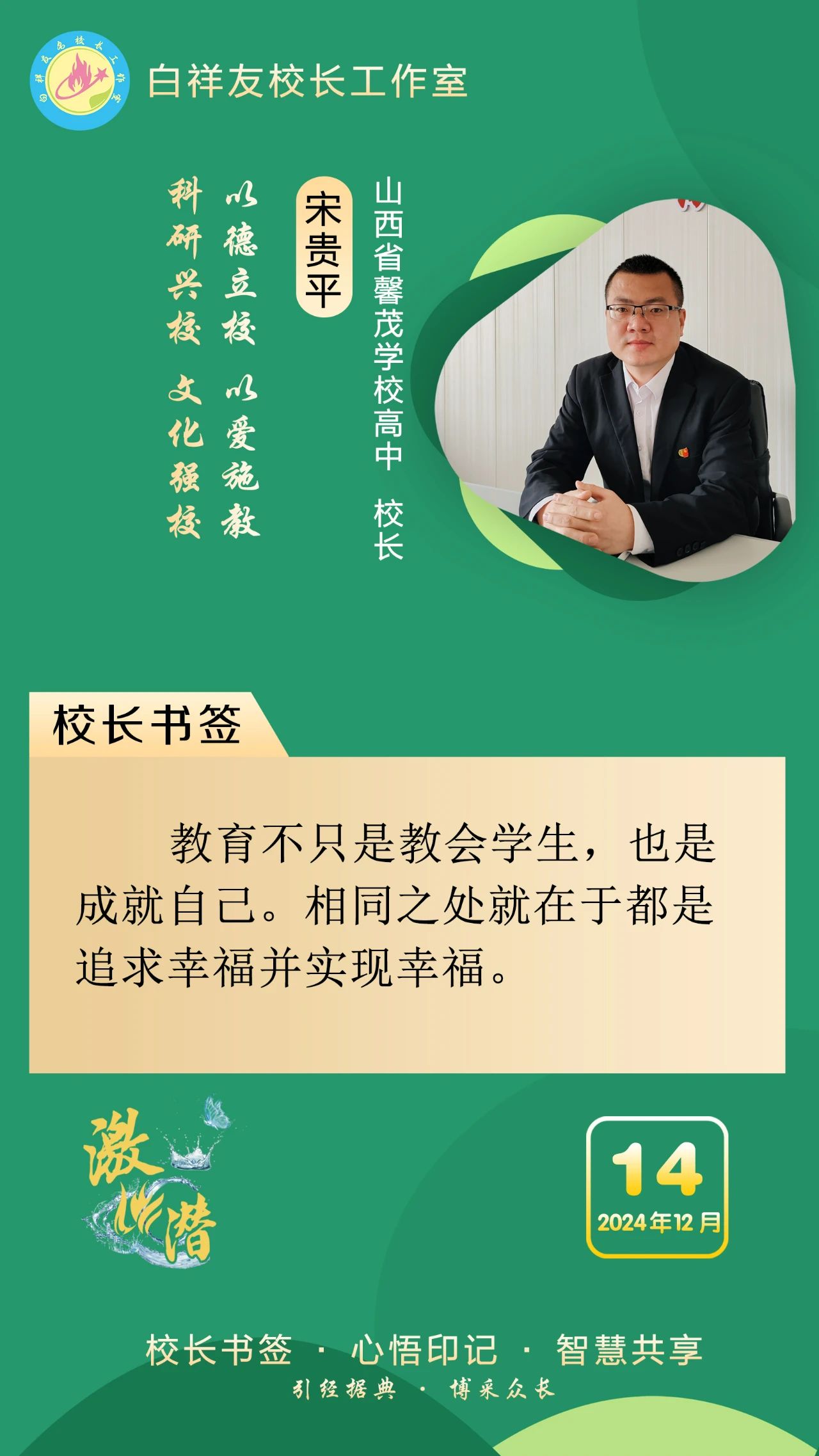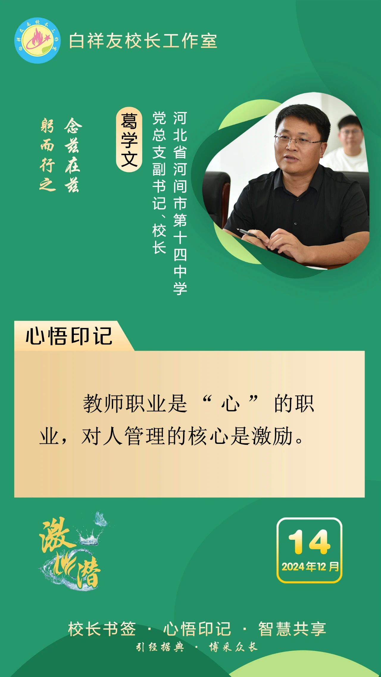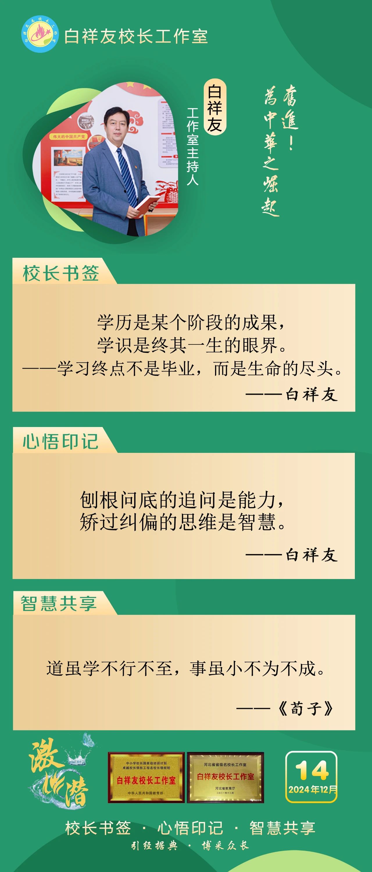 “白祥友校长工作室”成立于2019年4月,是教育部“国培计划”中小学名校长领航工程、河北省首批名校长工作室,目前省内外成员校48个。工作室坚持“资源共享、智慧共融、互助共赢”理念,已成为思想碰撞的交流场,资源共享的品牌站,成果展示的辐射源。
