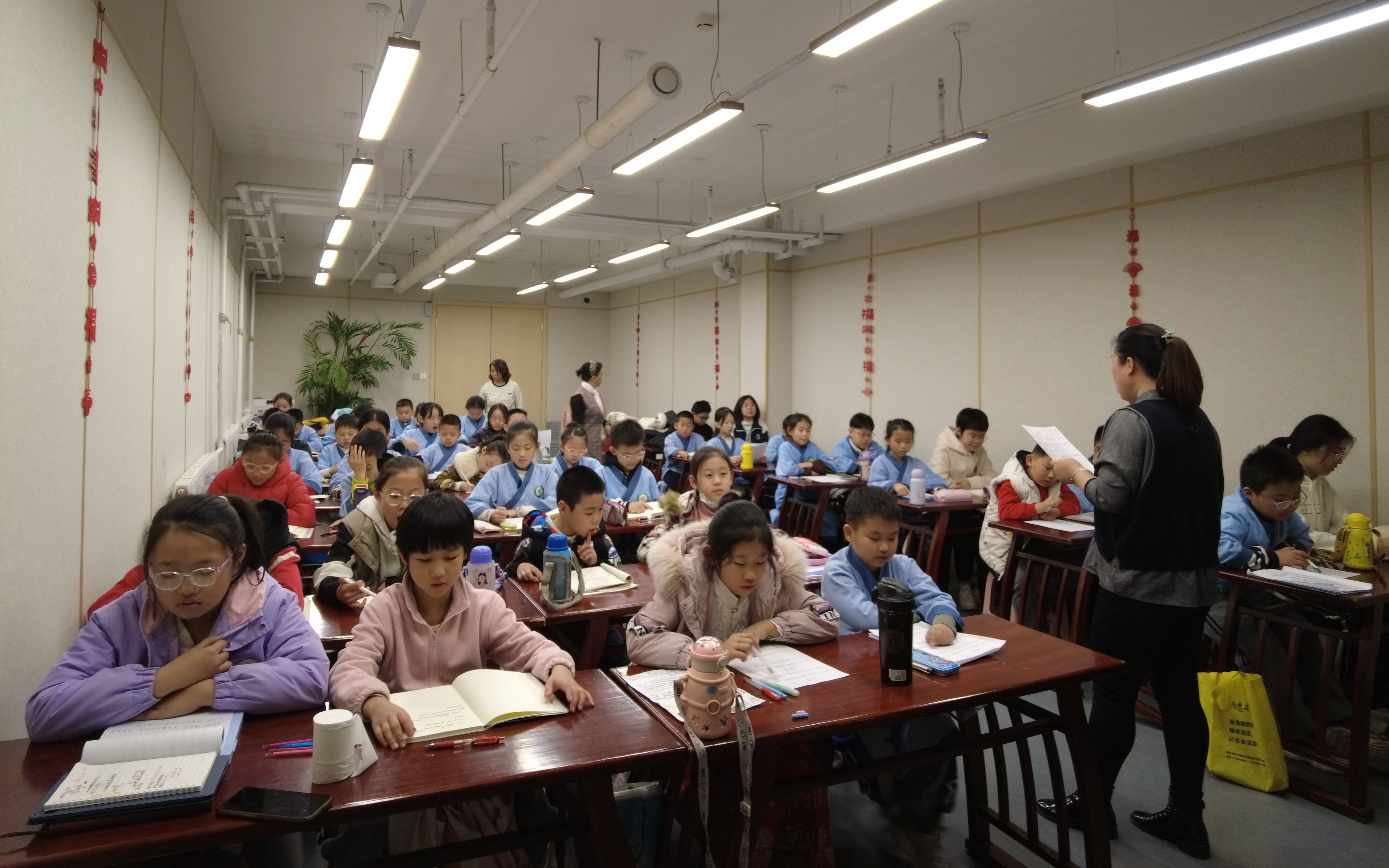随着“亲子读书社”影响不断扩大,2015年,“在田学堂”正式揭牌。“在田学堂”是一个集国学经典共读、亲子沟通课程、户外亲子活动于一体的综合性学习平台,主要利用孩子们周末和假期的时间开课。“在田学堂”还结合古典音乐欣赏、吟诵、亲子共读等活动,形成了独特的公益教育模式。2019年,张兵将“在田学堂”引入昊和沁园小区。“在这里,义工老师们组织孩子们开展多种活动,如舞台剧、汉服秀、诗词朗诵,以及国学秀、诗词大赛等。”张兵说,“这些活动不仅锻炼了孩子们的才艺展示能力,还帮助他们树立了文化自信。”