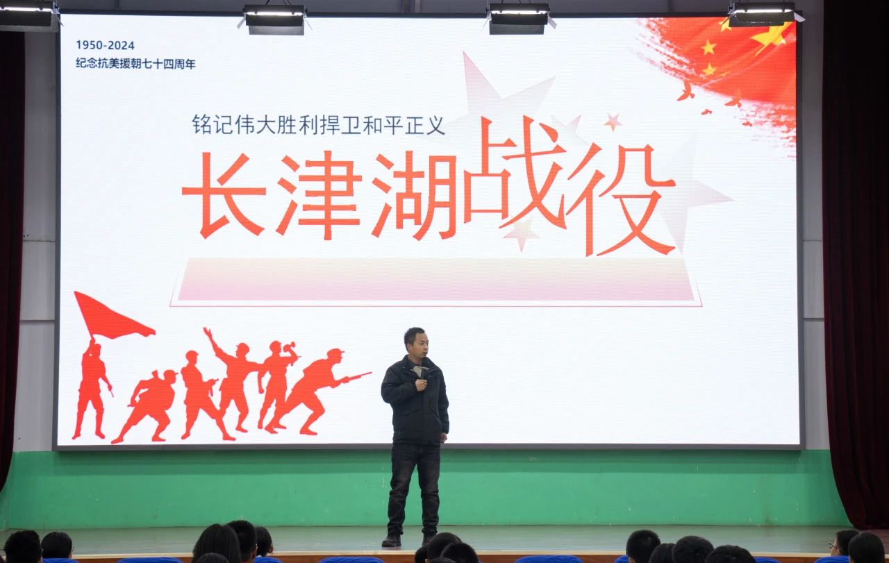 74年前,中国人民志愿军在长津湖的冰天雪地里苦战20余天,有的连队冻死在阵地上却仍保持着战斗队形……74年后,我们早已如先辈所愿,迎来了山河锦绣、国泰民安的美好时代。为进一步加强爱国主义教育,让同学们深刻感悟伟大抗美援朝精神,衡水十三中于12月24日组织开展了“纪念长津湖战役胜利74周年”教育活动,铭记历史,缅怀先烈。