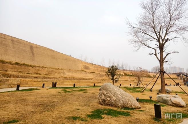 修缮后的郑州商城遗址南城墙(央广网记者 郝振青 摄)