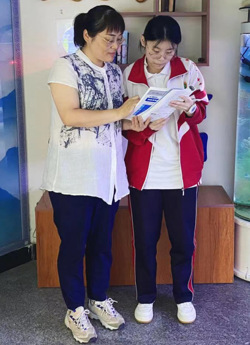 于是,我叫了班里性格活泼、乐于助人的黄迎庆——学生们亲切地称他为“大庆”,去帮我到办公室取这本资料。我告诉他,本子放在我办公桌上的书里面,是一个粉色的笔记本,上面还印着一双浅粉色的鞋子图案。描述这些特征是为了让大庆能够更快地找到这本资料。