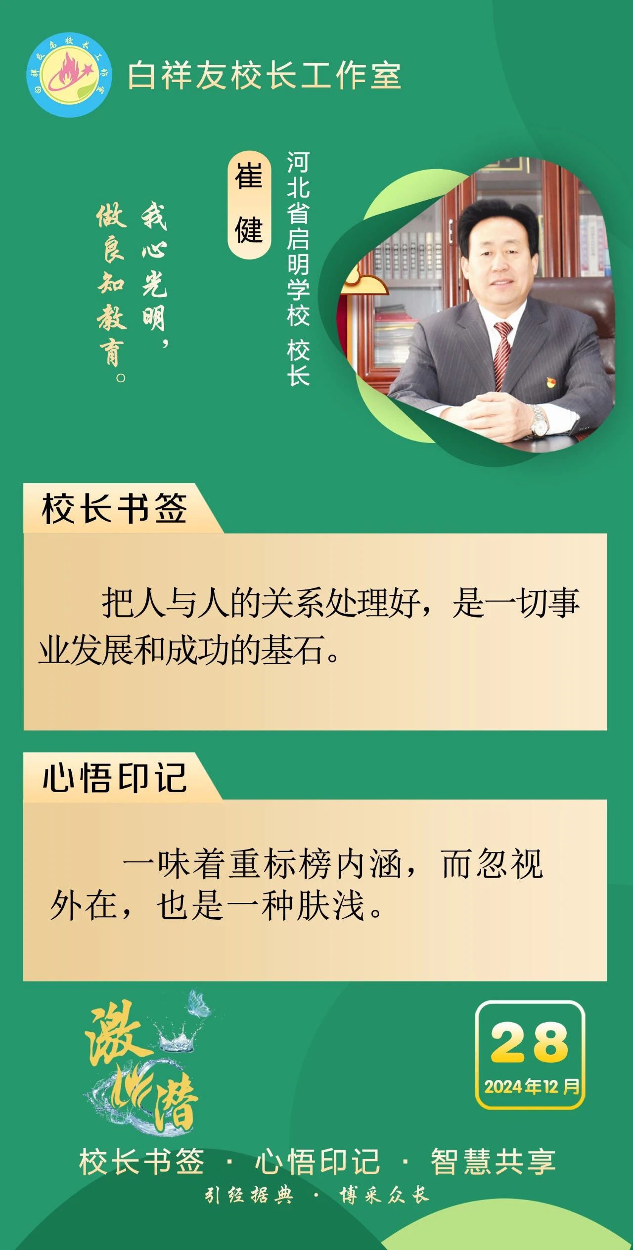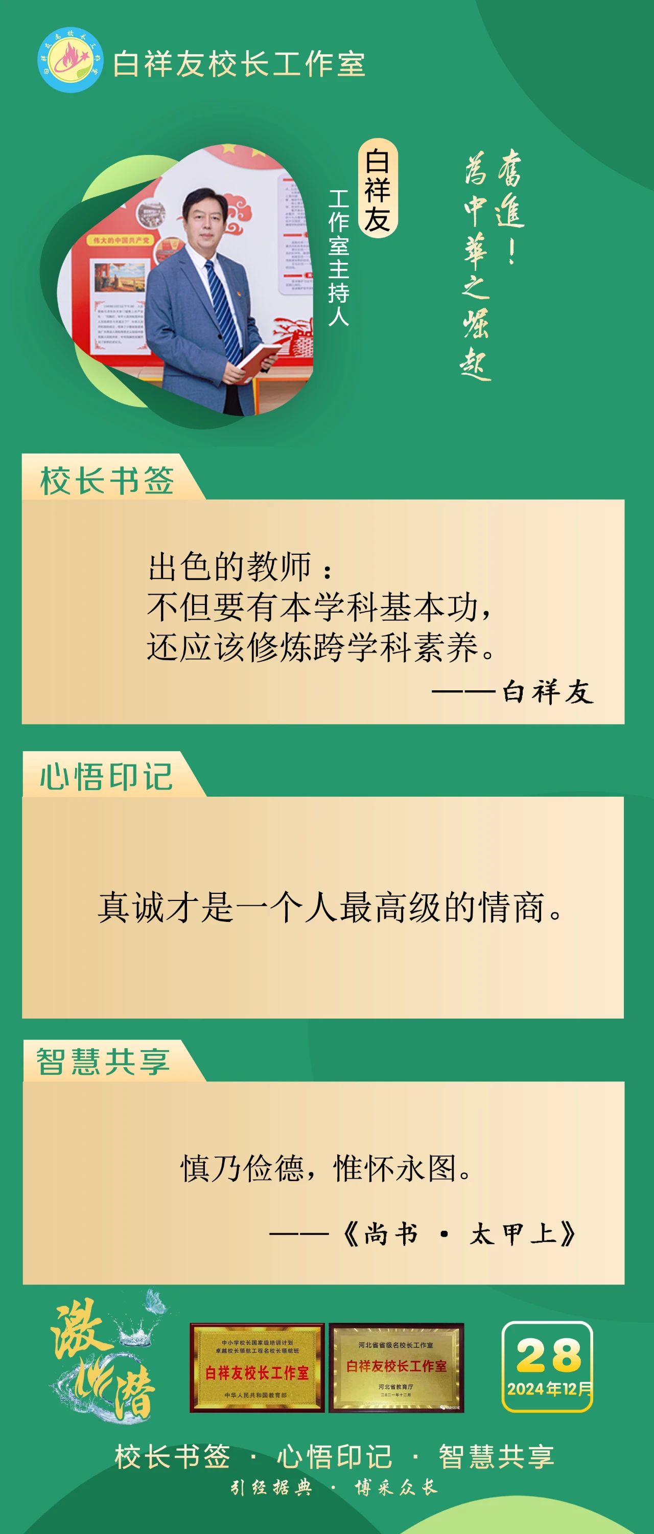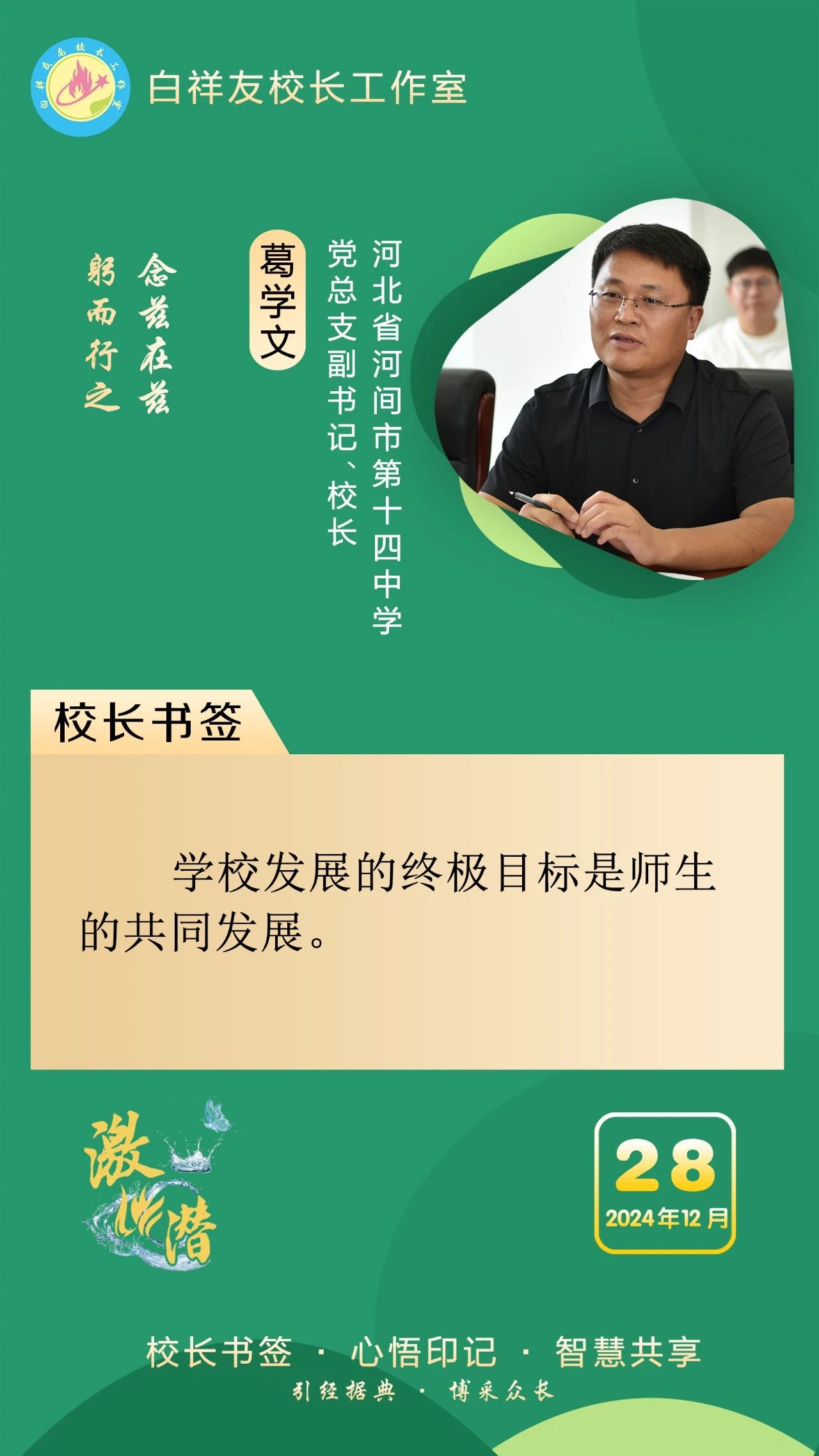 “白祥友校长工作室”成立于2019年4月,是教育部“国培计划”中小学名校长领航工程、河北省首批名校长工作室,目前省内外成员校48个。工作室坚持“资源共享、智慧共融、互助共赢”理念,已成为思想碰撞的交流场,资源共享的品牌站,成果展示的辐射源。