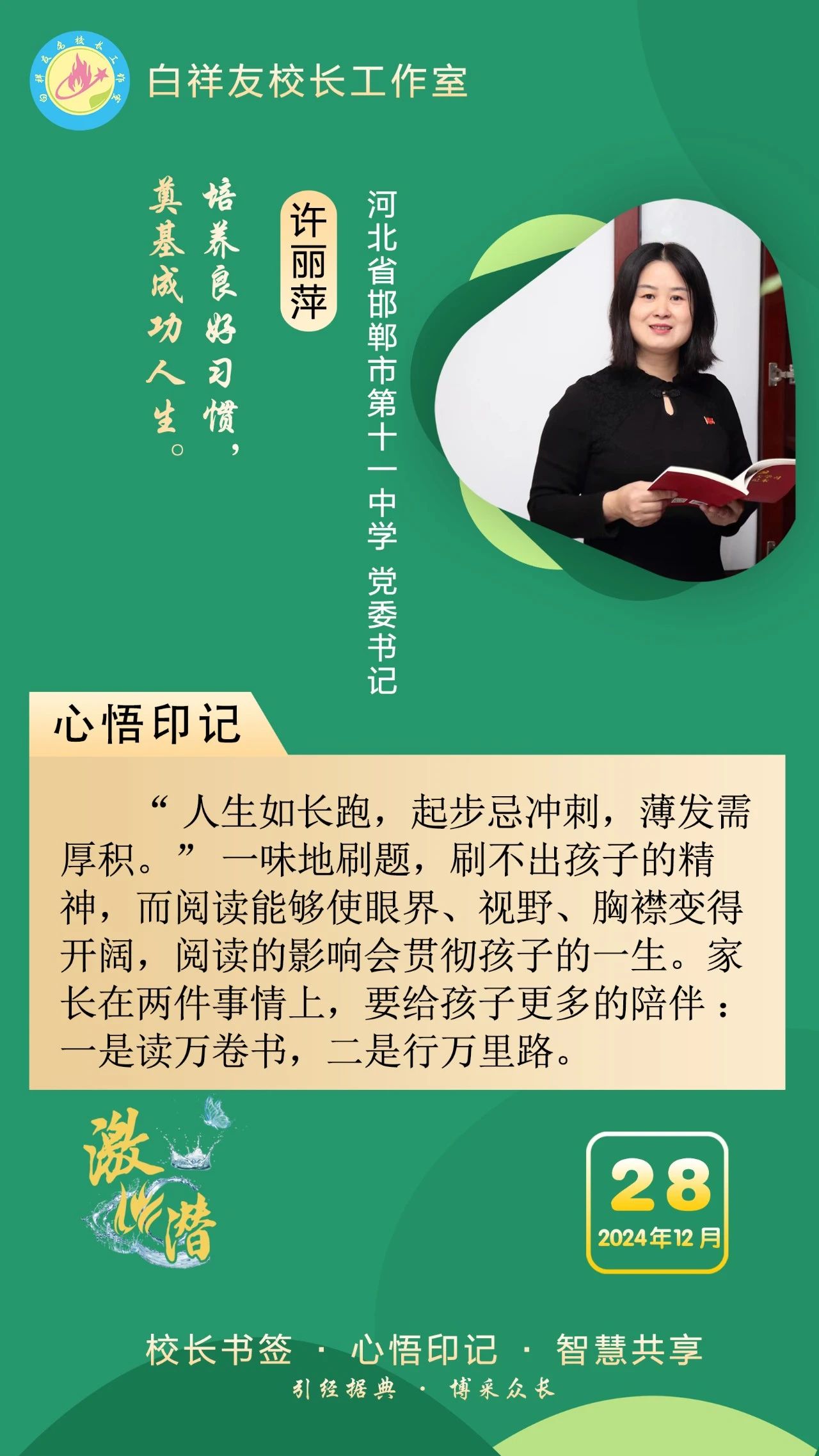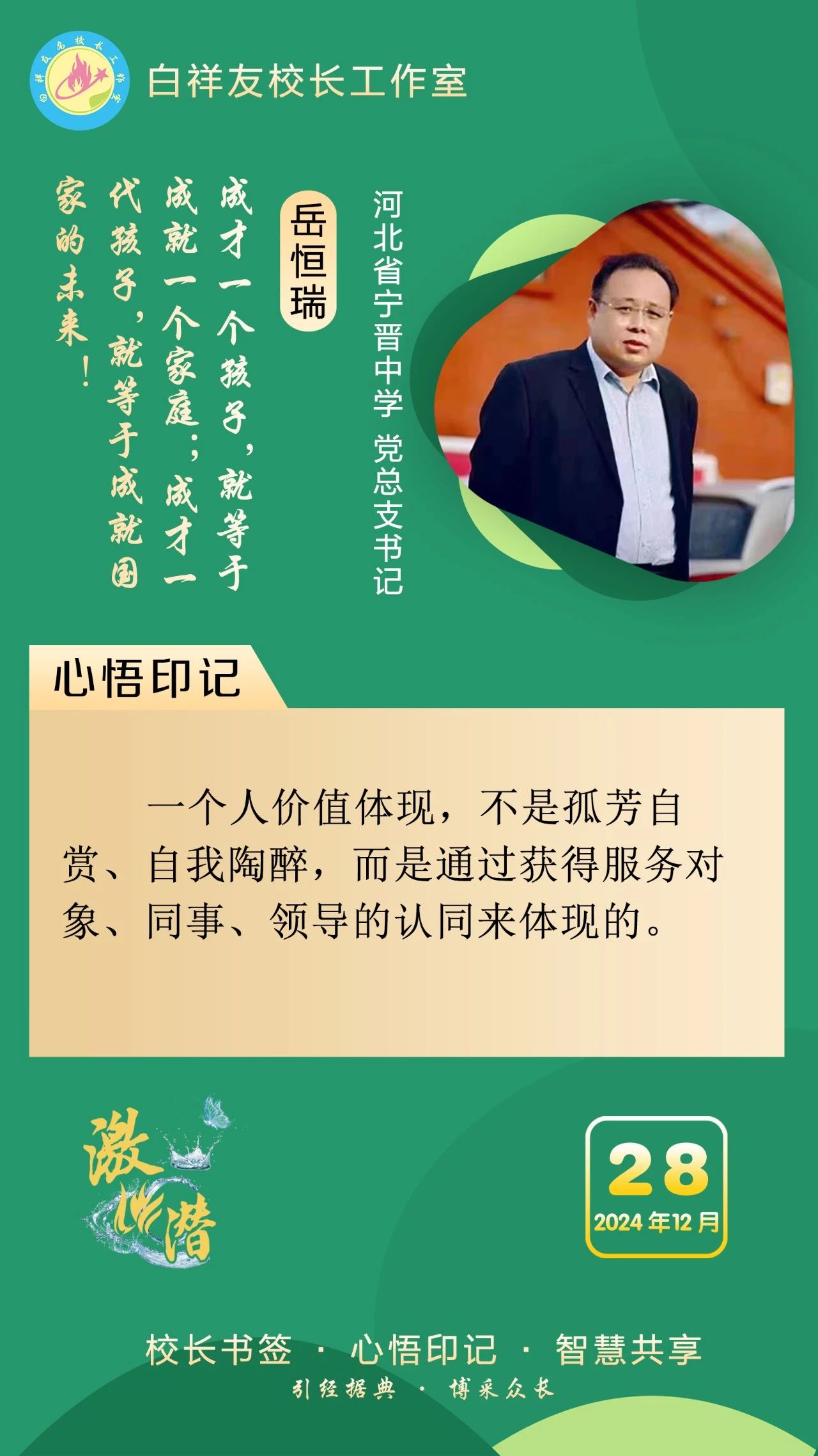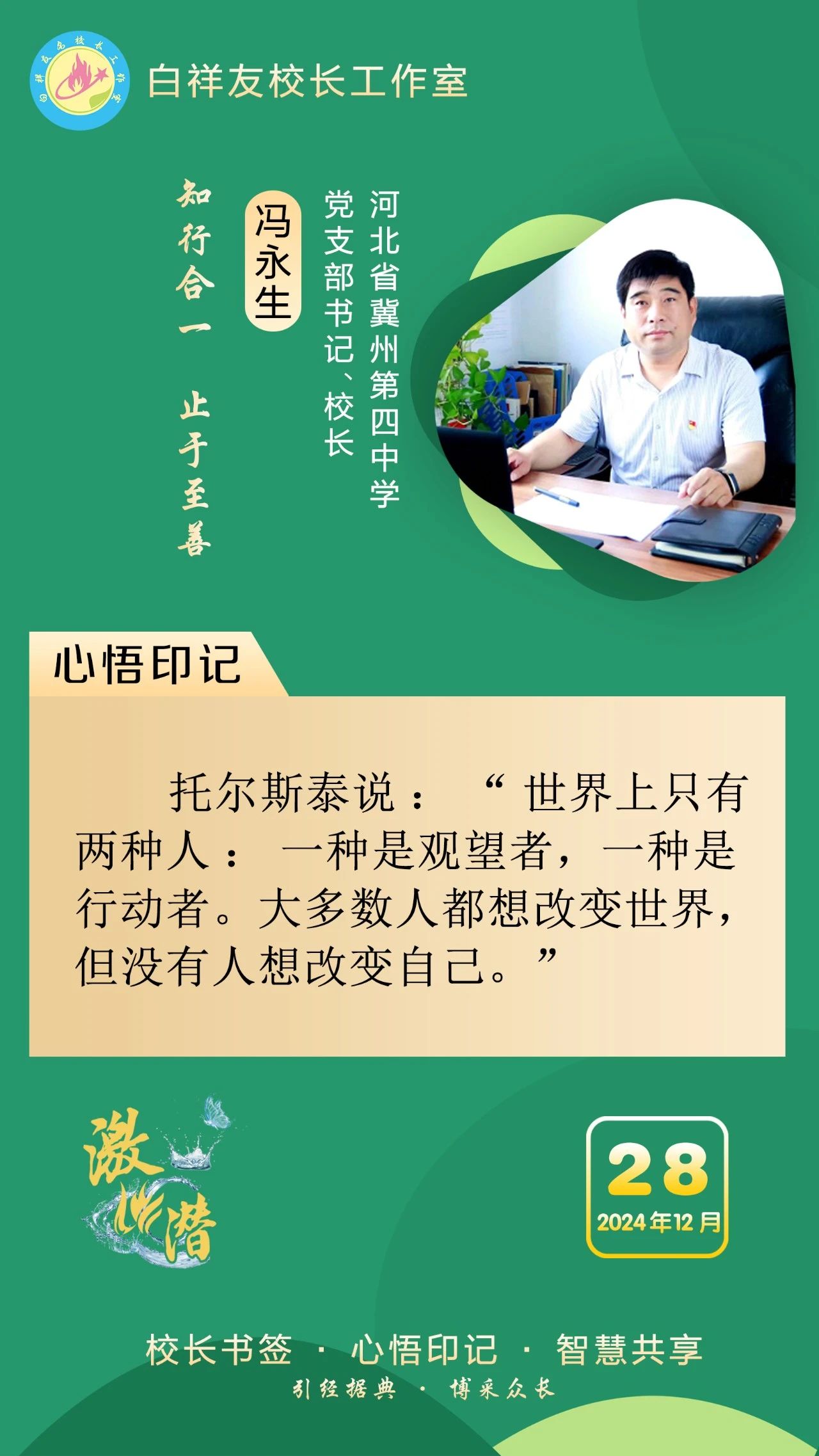“白祥友校长工作室”成立于2019年4月,是教育部“国培计划”中小学名校长领航工程、河北省首批名校长工作室,目前省内外成员校48个。工作室坚持“资源共享、智慧共融、互助共赢”理念,已成为思想碰撞的交流场,资源共享的品牌站,成果展示的辐射源。