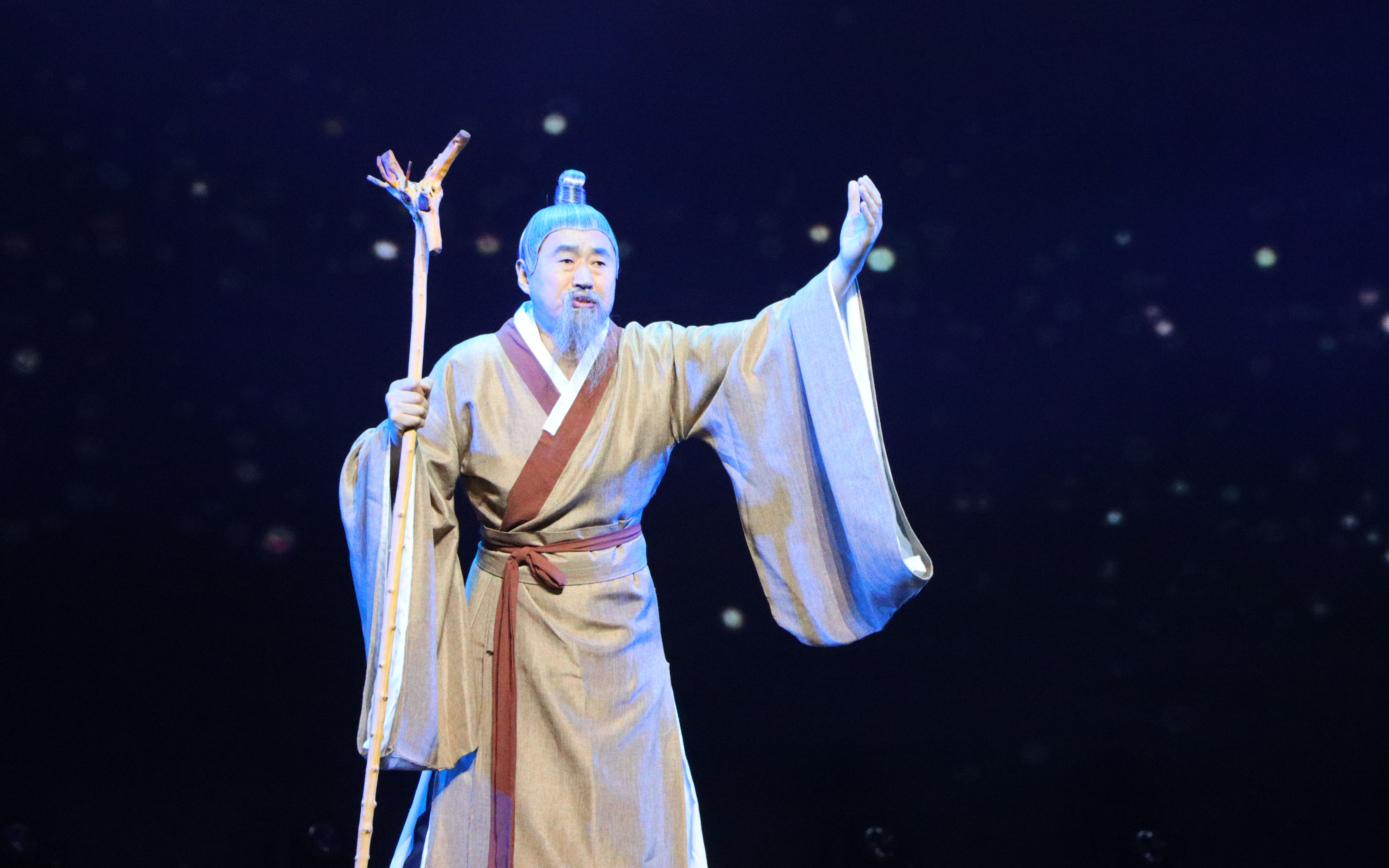 剧中,董仲舒的一生被分为几个关键阶段,每个阶段都通过不同的舞蹈编排和音乐创作,展现了其思想的发展与变化。开场的“目不窥园”章节,通过一段独舞和深情的吟诵,传达了他远离诱惑、专注于学问研究的决心。“下帷讲诵”章节,则通过集体舞和激昂的鼓点,表现了董仲舒公开讲学、弘扬儒学的场景。在“天人感应”“大一统”章节,通过董仲舒与汉武帝对话形式,呈现董仲舒的治国理念。