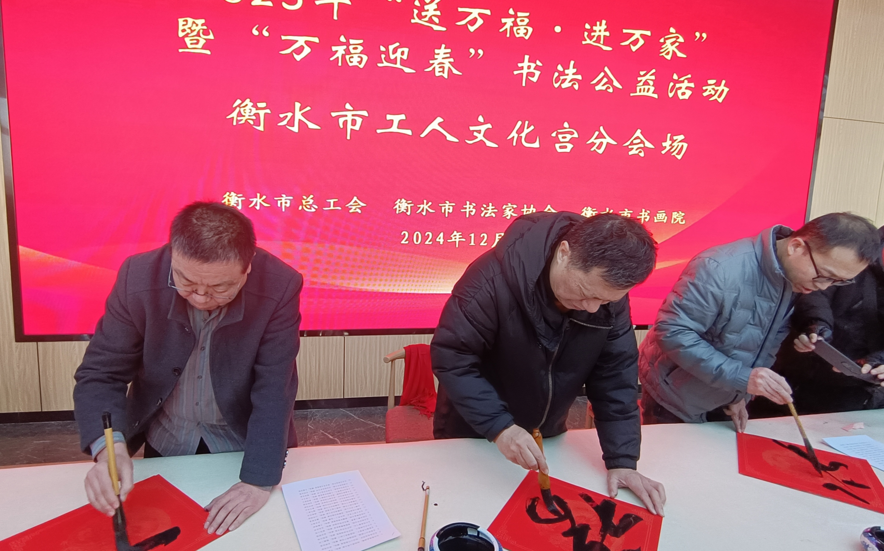 据悉,市总工会还组织书法家同时深入到衡水市供电公司和衡水养元智汇有限公司,为企业一线职工送春联、写福字,切实为广大职工群众送上新春祝福和文化大餐。