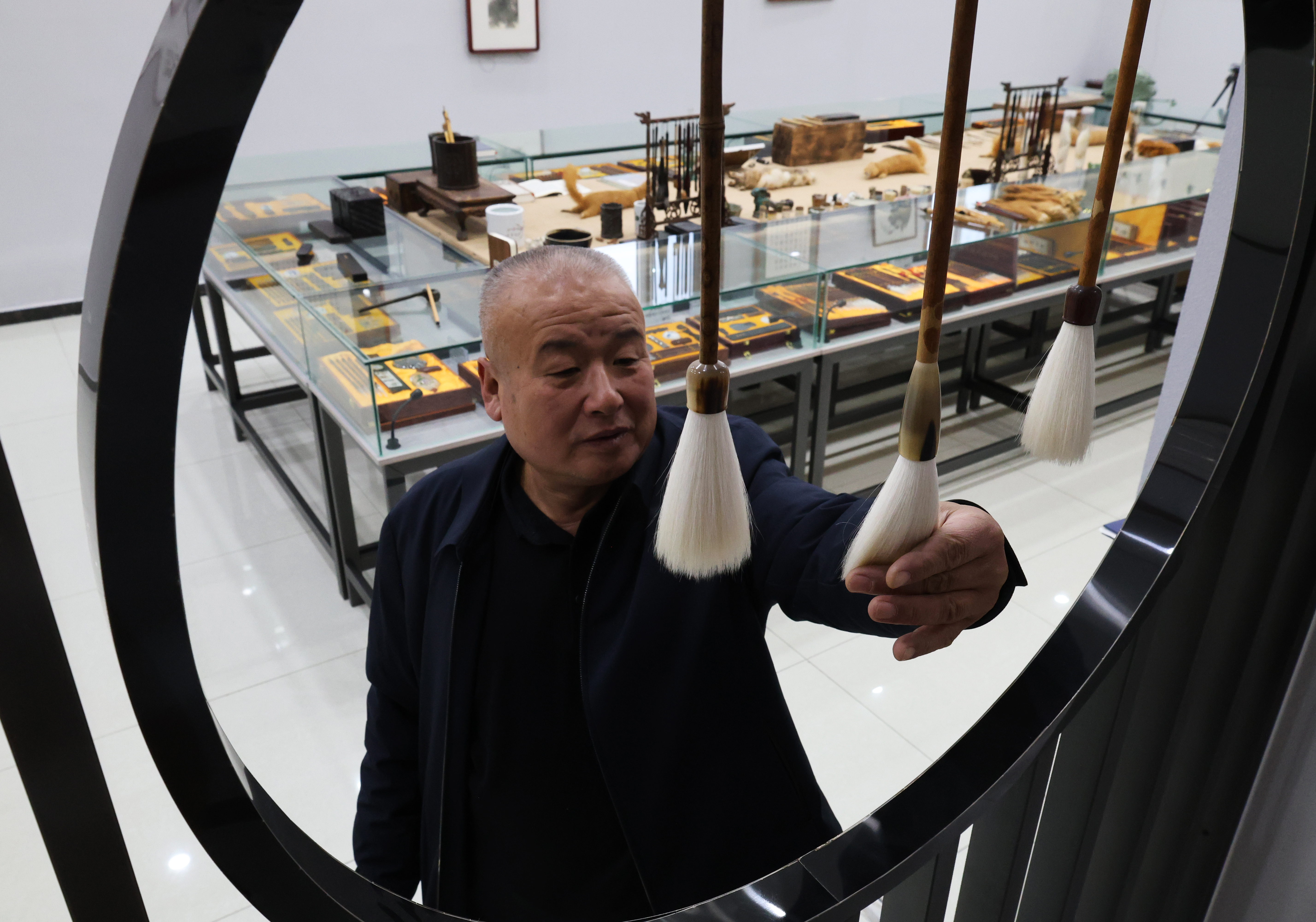 “侯店毛笔不仅仅承载着我家族的荣耀,更承载着衡水悠久的历史文化底蕴。”这些年在用匠心传承这份手工技艺的同时,孙占彪也在为守护这份优秀中华传统文化而默默付出。2017年,他投资1000多万元,在侯店村建起了个人毛笔展览馆。展览馆吸引了一批又一批的游客前来参观,同时也成为孩子们的研学圣地。位于展览馆三楼的“聿缘堂”,则以“聿缘”毛笔为媒,通过毛笔+书画艺术的融合发展方式,搭建起了书画艺术研讨交流的平台。