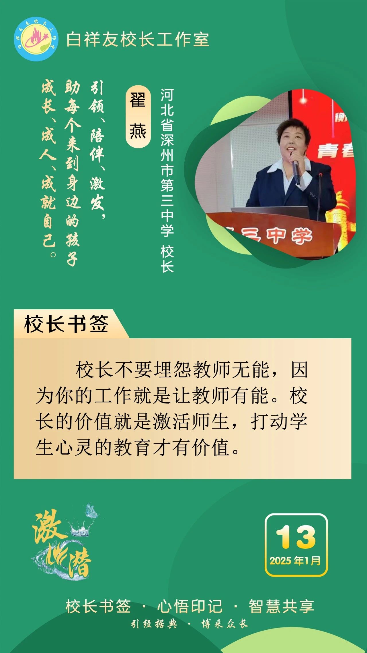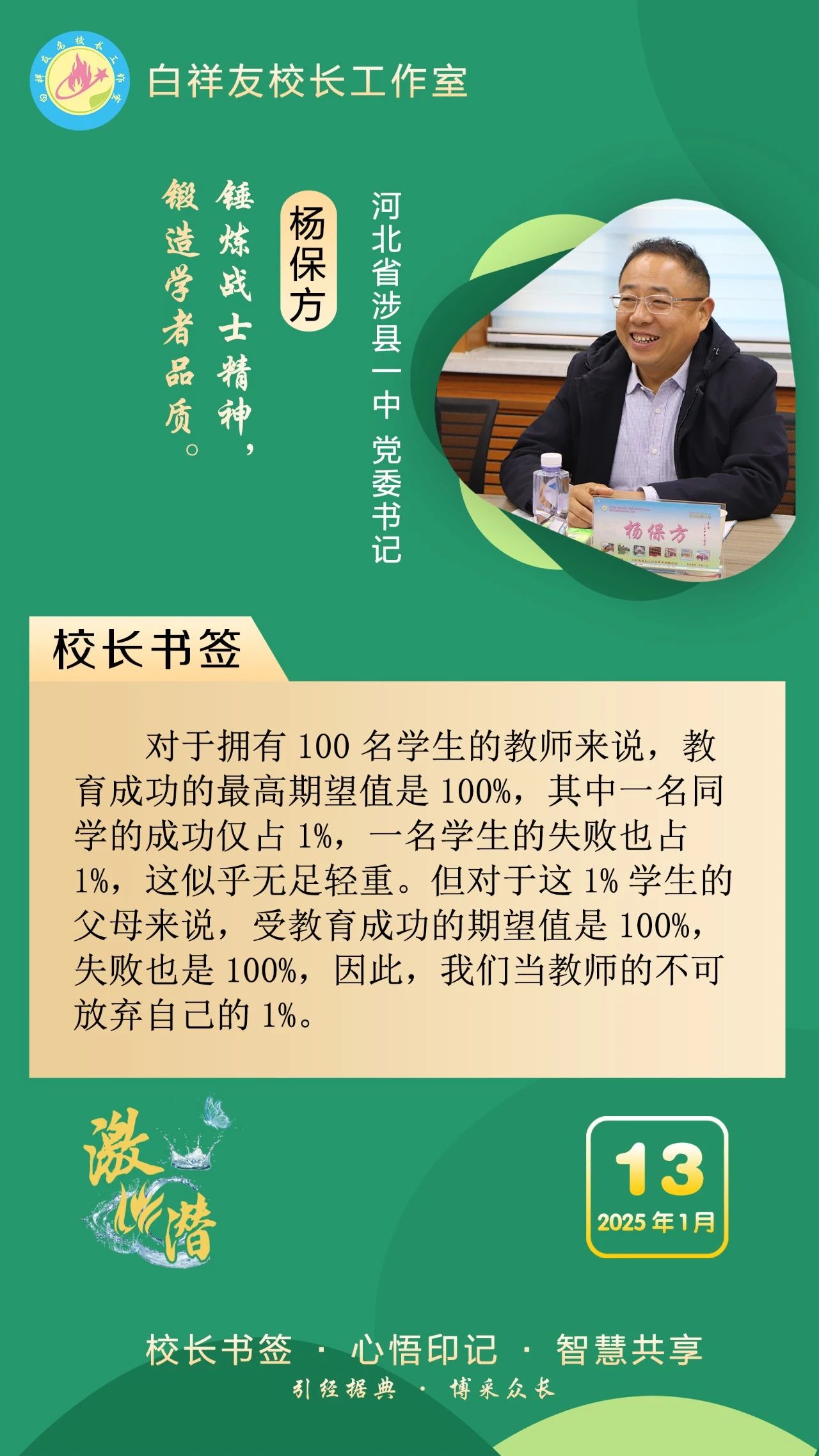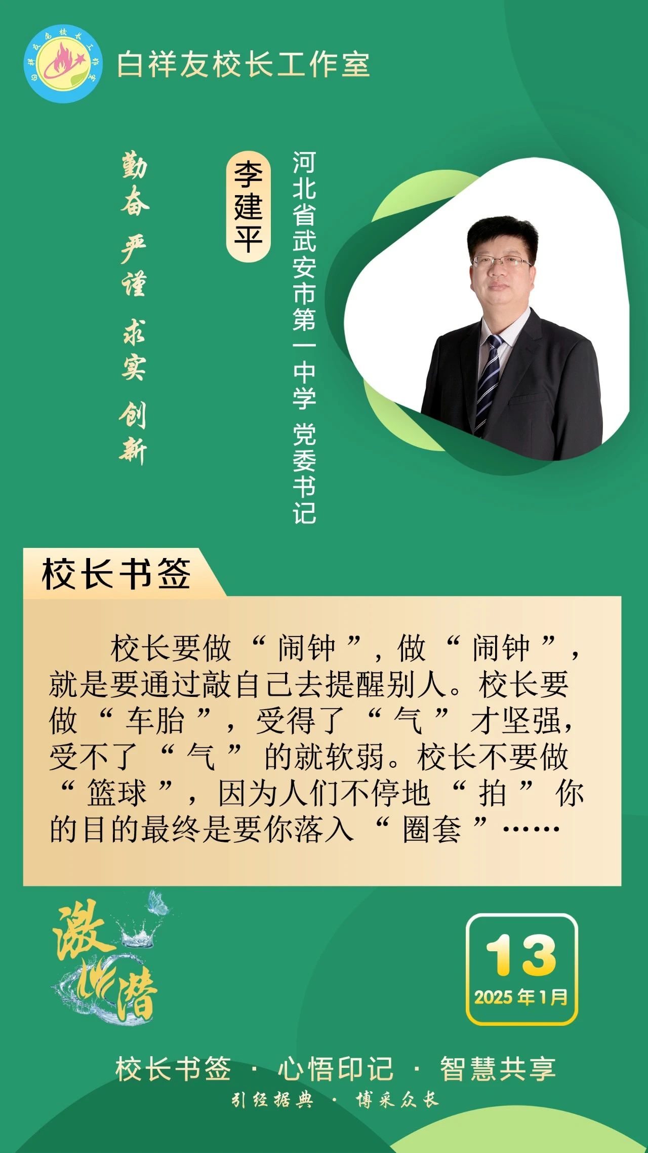 “白祥友校长工作室”成立于2019年4月,是教育部“国培计划”中小学名校长领航工程、河北省首批名校长工作室,目前省内外成员校48个。工作室坚持“资源共享、智慧共融、互助共赢”理念,已成为思想碰撞的交流场,资源共享的品牌站,成果展示的辐射源。