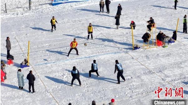 图为雪地排球比赛现场。 刘艳飞 摄