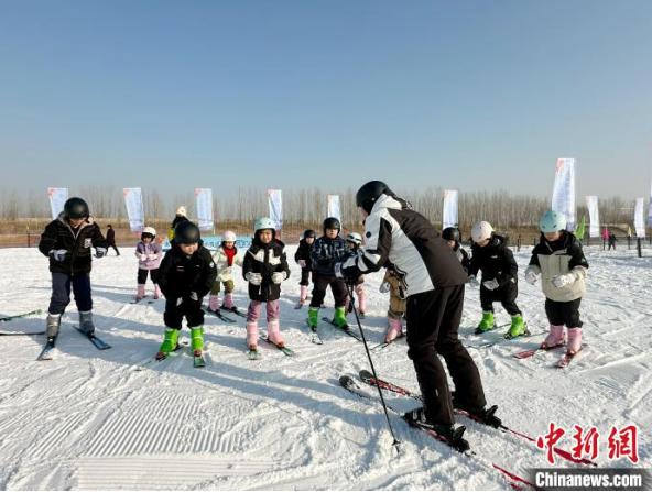 图为孩子们在活动现场学习体验双板滑雪项目。 刘艳飞 摄