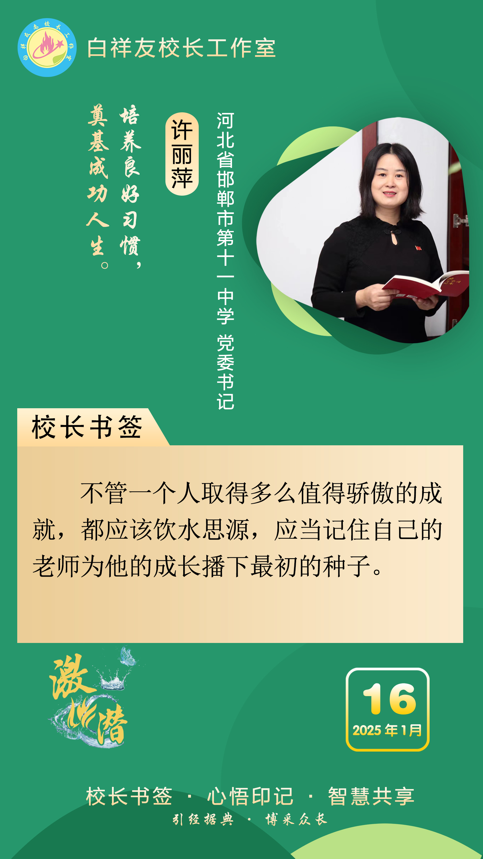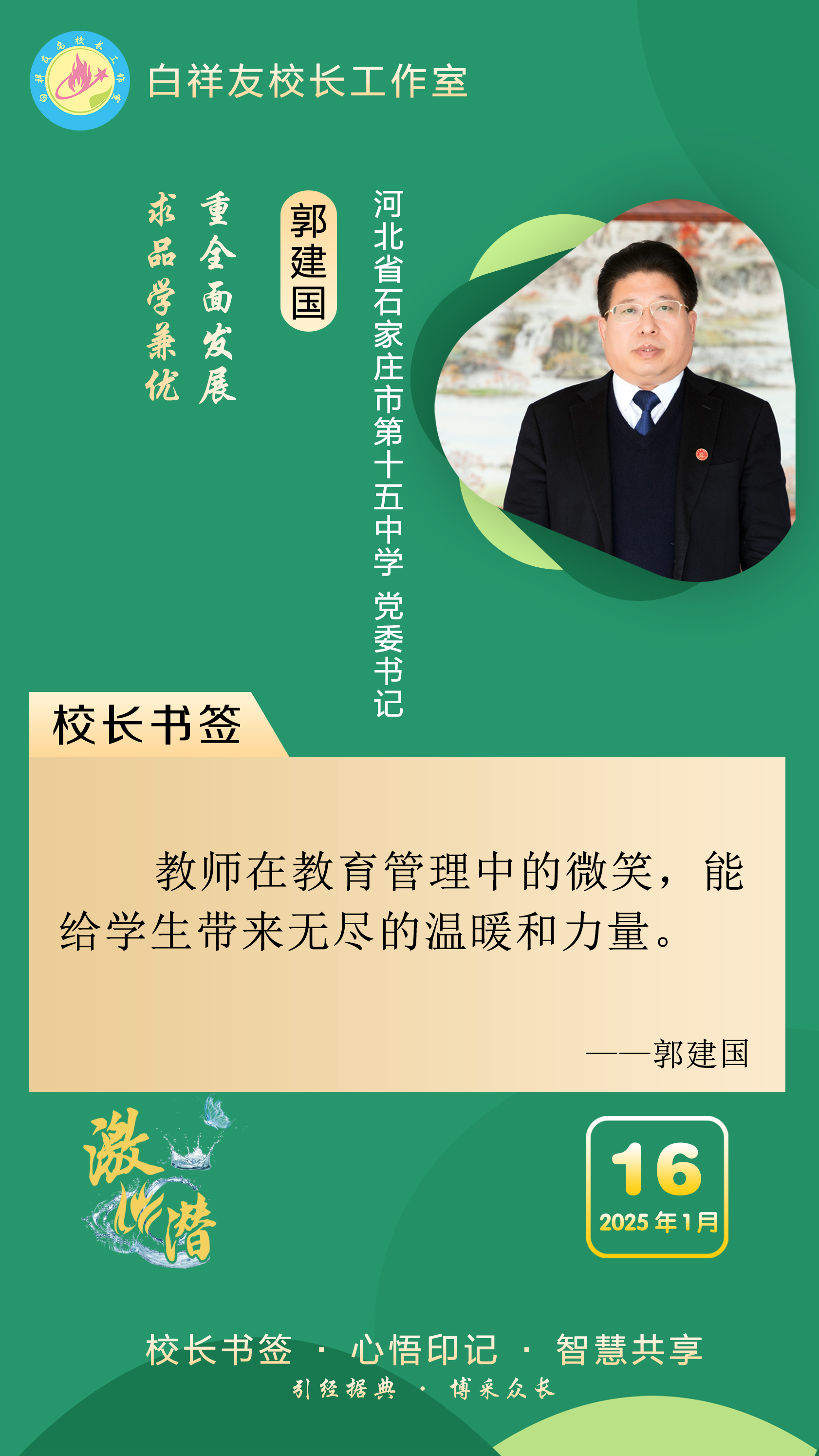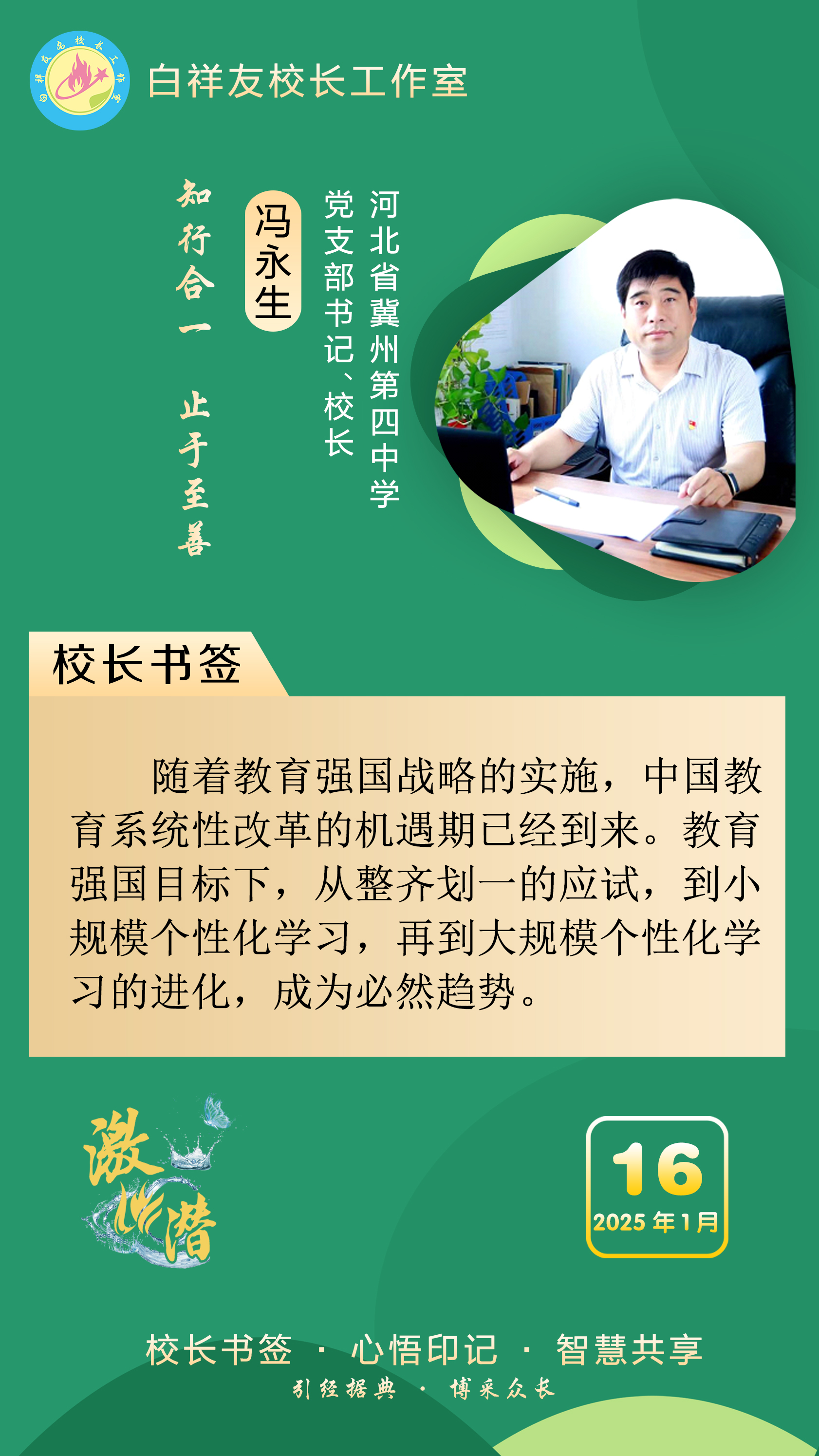 “白祥友校长工作室”成立于2019年4月,是教育部“国培计划”中小学名校长领航工程、河北省首批名校长工作室,目前省内外成员校56个。工作室坚持“资源共享、智慧共融、互助共赢”理念,已成为思想碰撞的交流场,资源共享的品牌站,成果展示的辐射源。