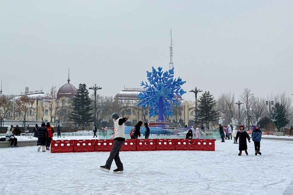 位于南岗体育场的公益冰场边,“90后”宝妈杨帆站在场边指导,7岁的女儿在冰上轻快滑行。“从家走过来只需步行10分钟。”杨帆说,持续“上新”的冰场让孩子每天都能享受冰雪运动的乐趣。