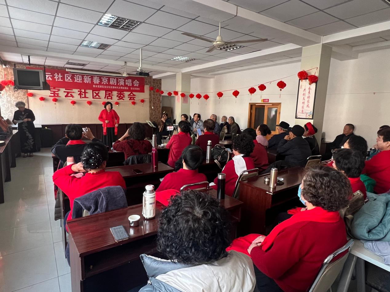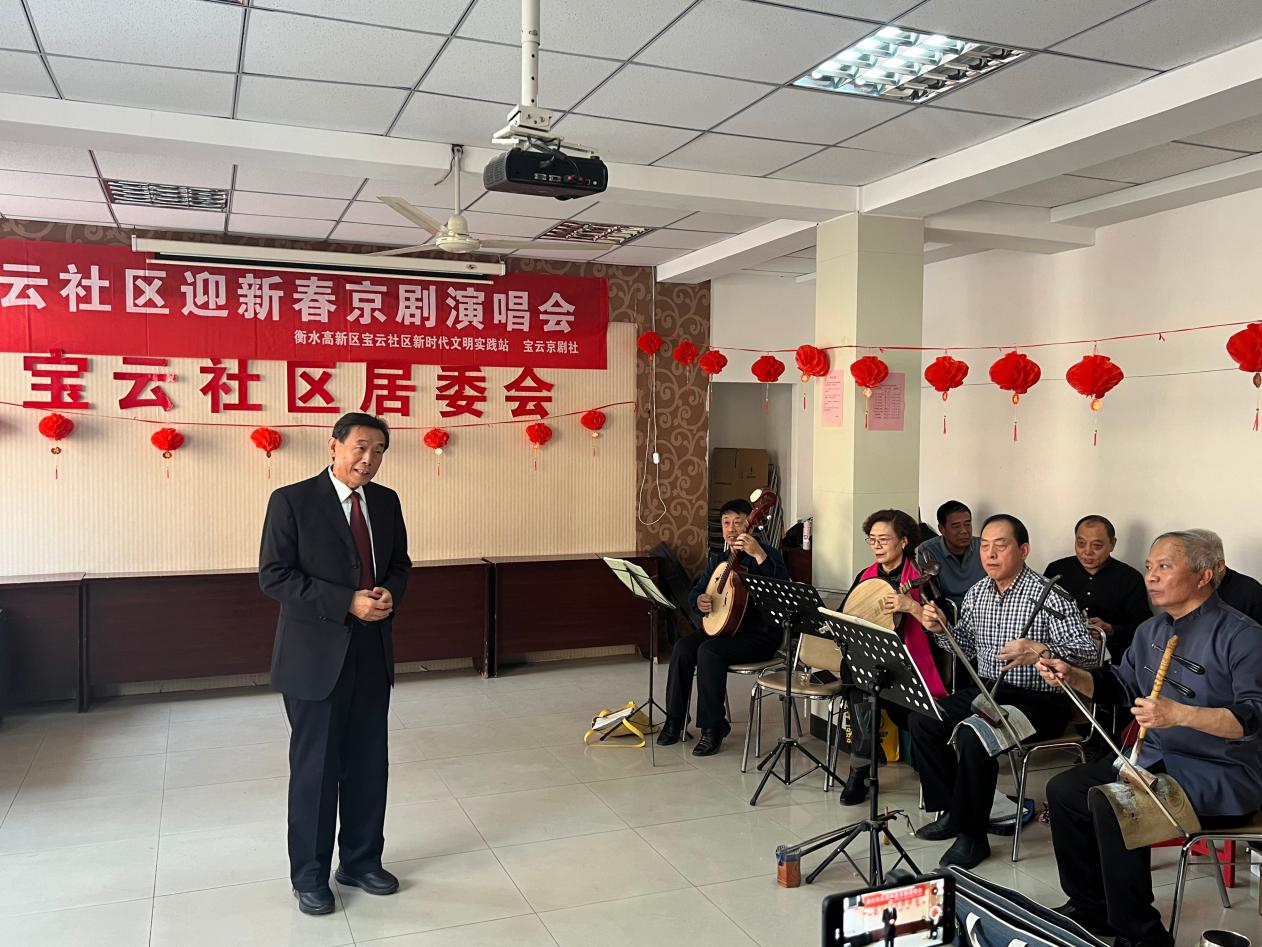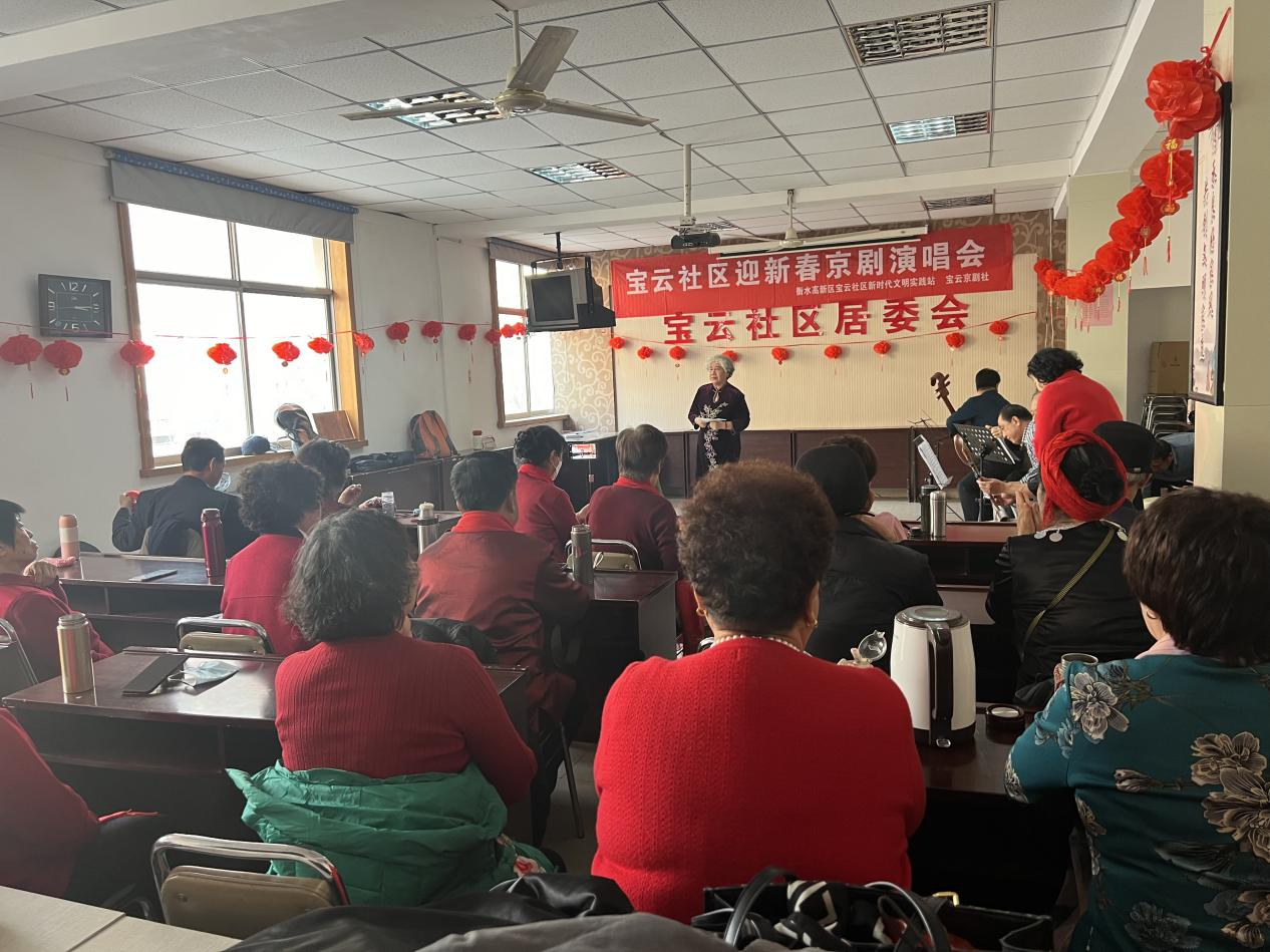 为了丰富社区居民的文化生活,迎接新春佳节的到来,近日,衡水高新区永兴街道管理服务中心宝云社区举办了一场精彩纷呈的京剧演唱会。本次演唱会由宝云社区居委会联合宝云京剧社共同策划和组织,吸引了众多社区居民前来观看,共同感受传统文化的魅力,营造了浓厚的节日氛围。