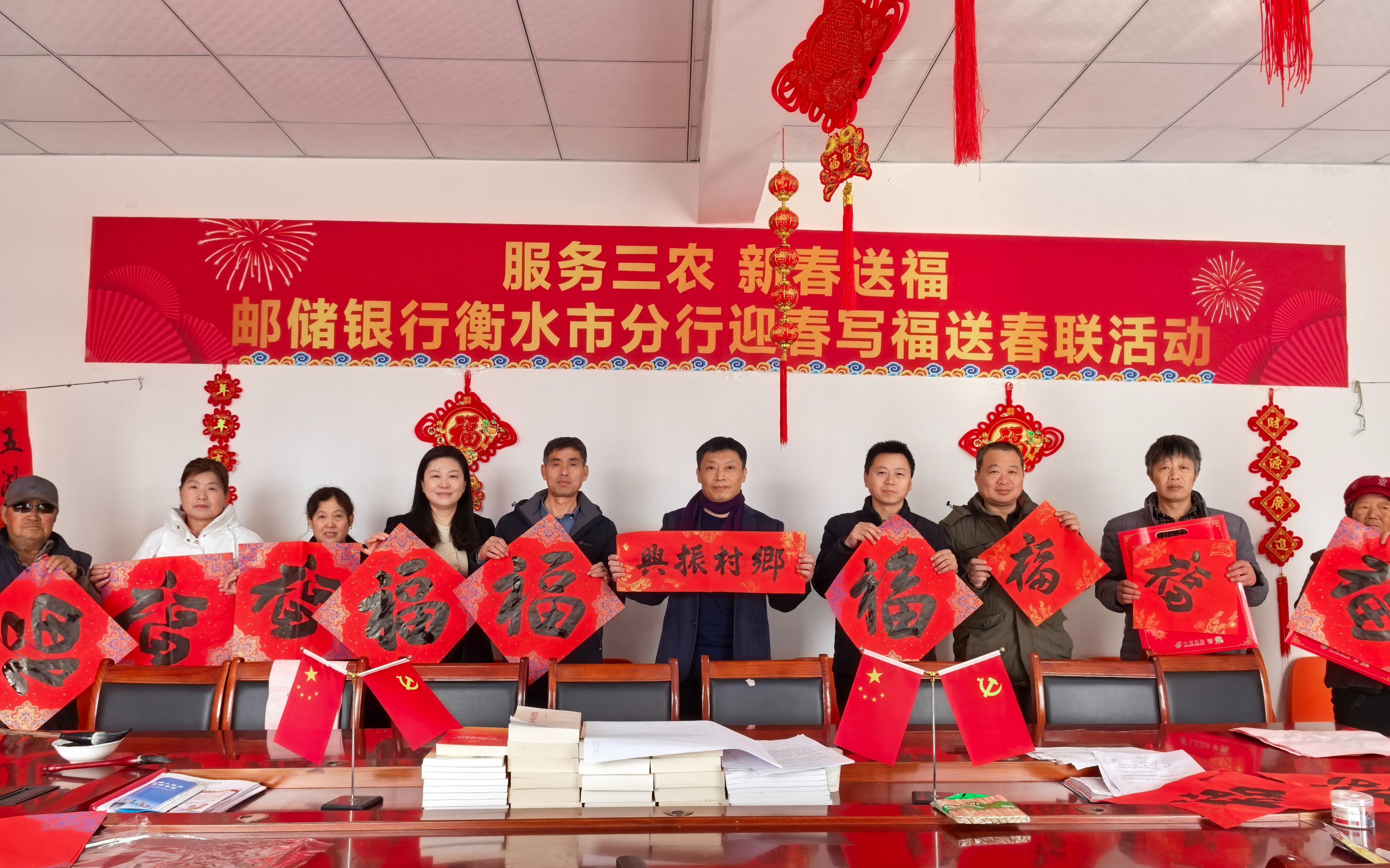 为弘扬中华优秀传统文化、营造欢乐祥和的节日氛围,1月24日上午,邮储银行衡水市分行组织开展"服务三农 新春送福"迎春写福送春联活动,该行党委书记、行长石滨逢亲自带队到武邑县东五更村,为村民们送春联。