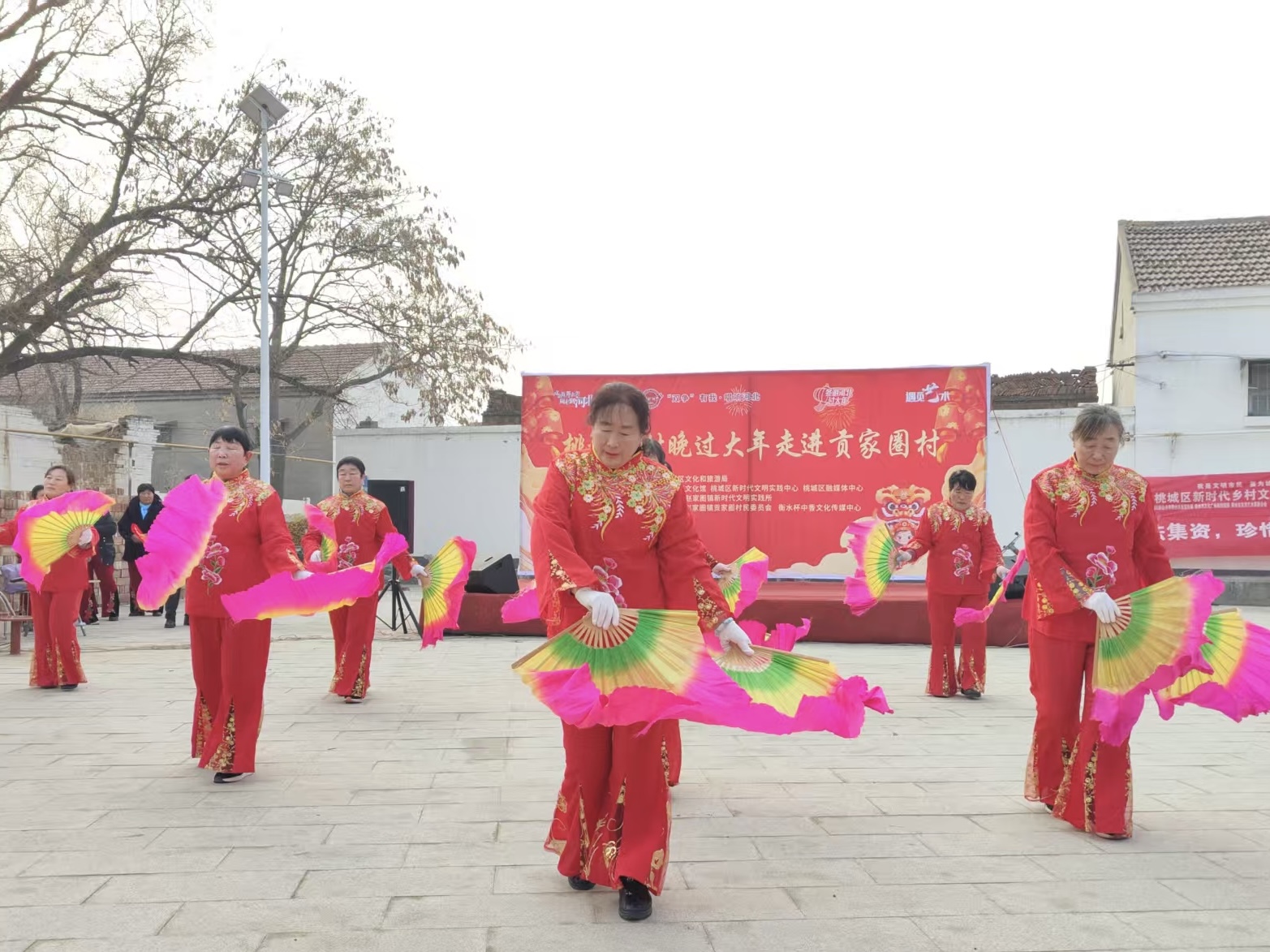 “咚锵咚锵咚咚锵……”贡前拿着手机,展示着村里的第一件大事儿——看“村晚”。在铿锵有力的击鼓声中,只见表演者身穿喜庆服装,或是踩着鼓点挥舞彩扇,或是打着节拍扭起腰肢。喜庆的节日氛围被点燃,浓浓的年味也扑面而来。