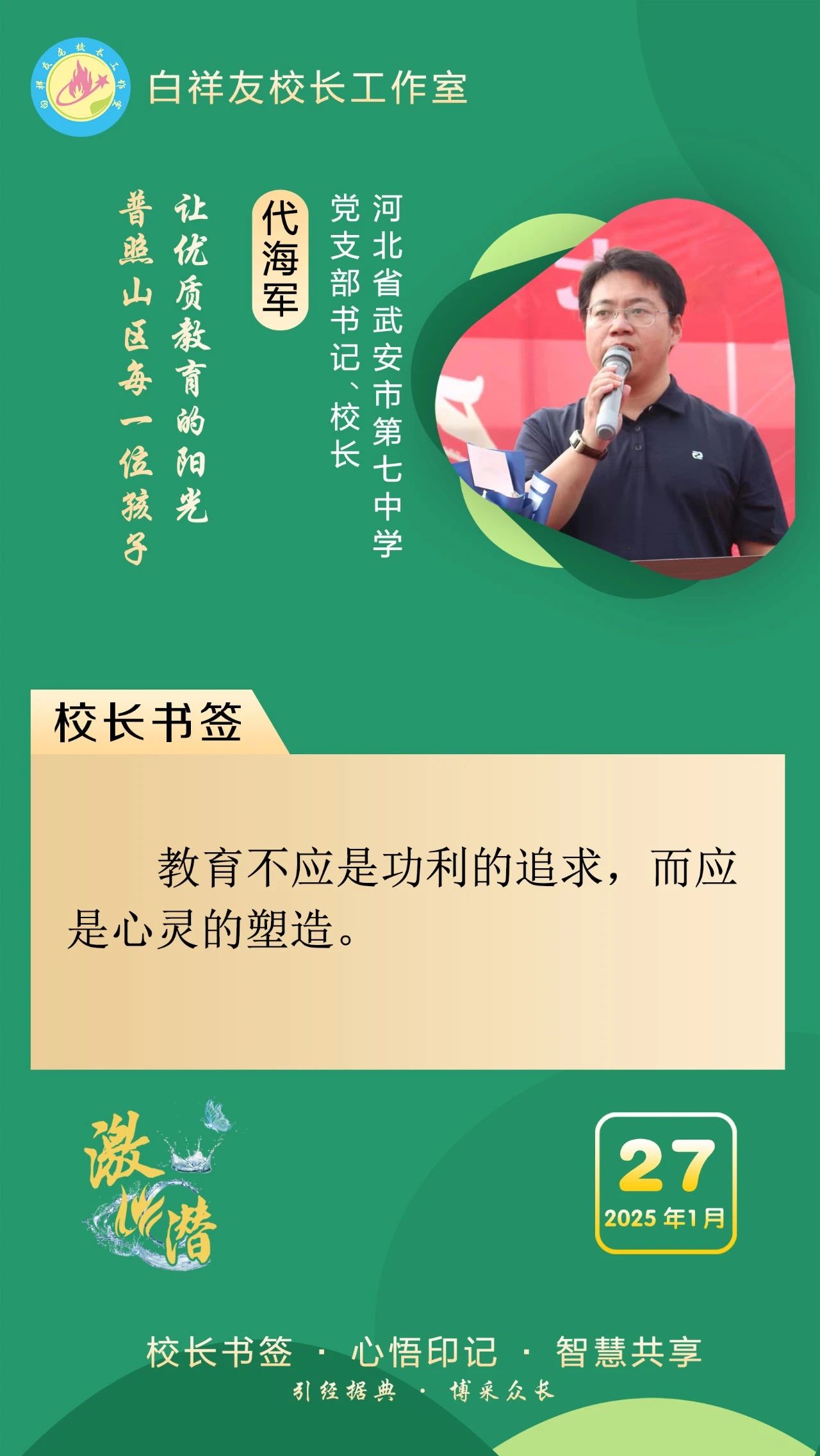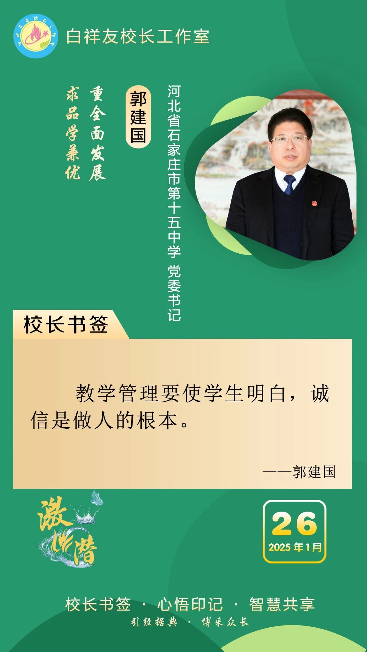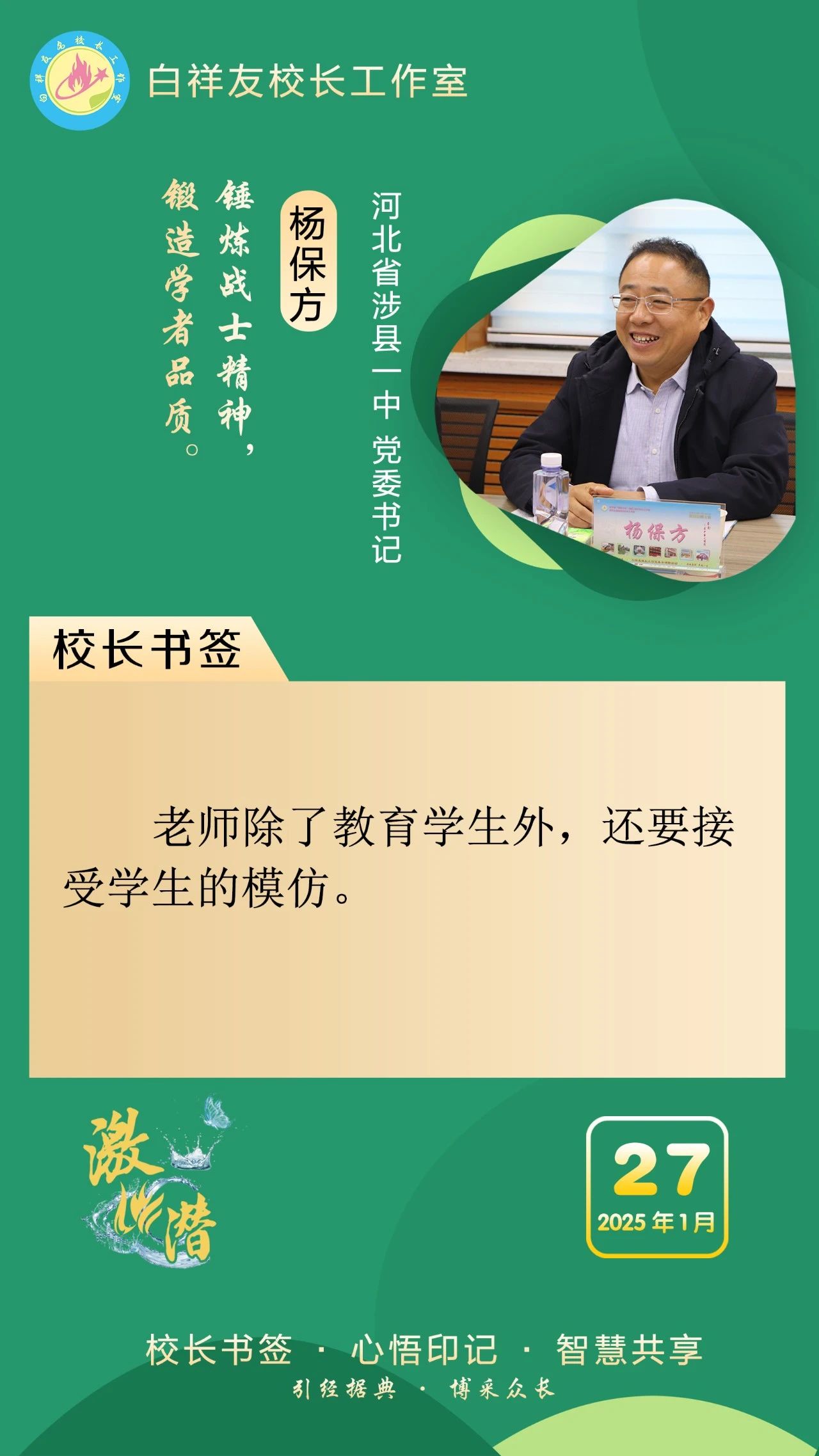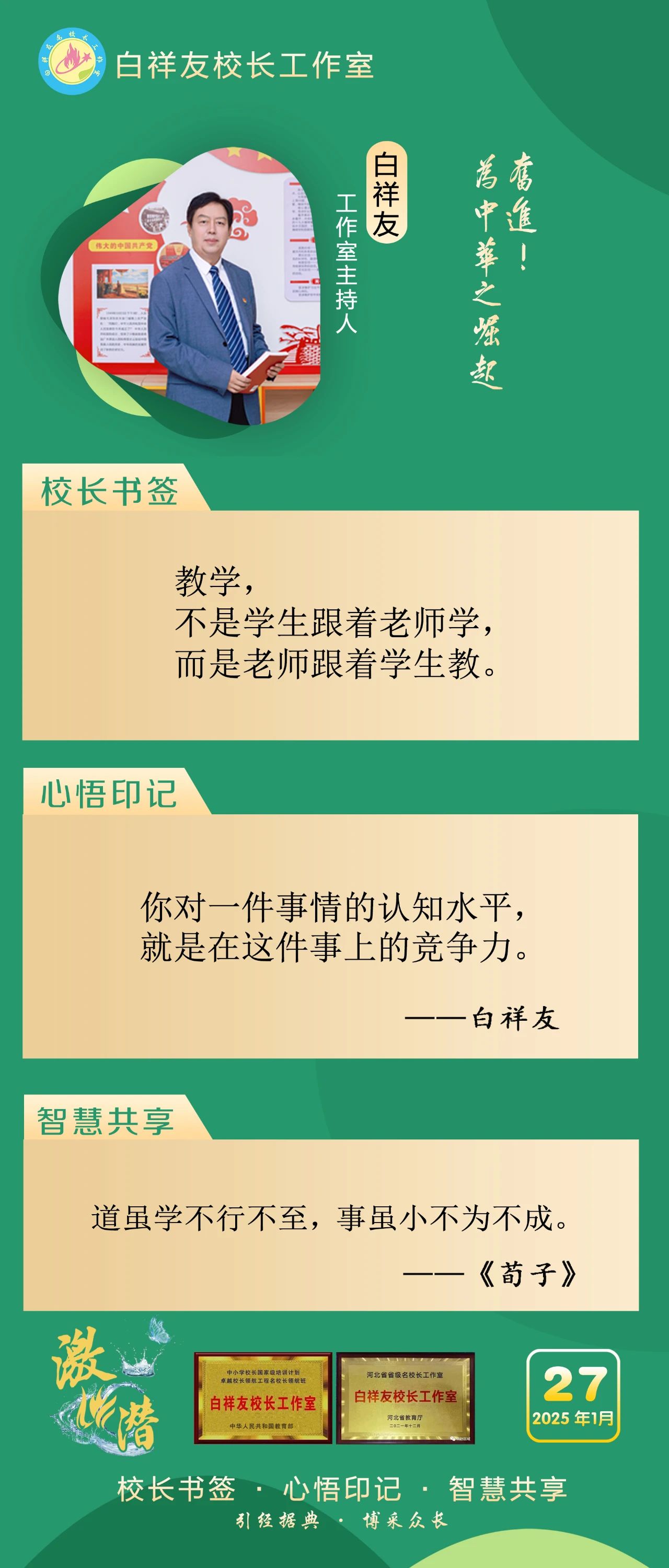 “白祥友校长工作室”成立于2019年4月,是教育部“国培计划”中小学名校长领航工程、河北省首批名校长工作室,目前省内外成员校56个。工作室坚持“资源共享、智慧共融、互助共赢”理念,已成为思想碰撞的交流场,资源共享的品牌站,成果展示的辐射源。