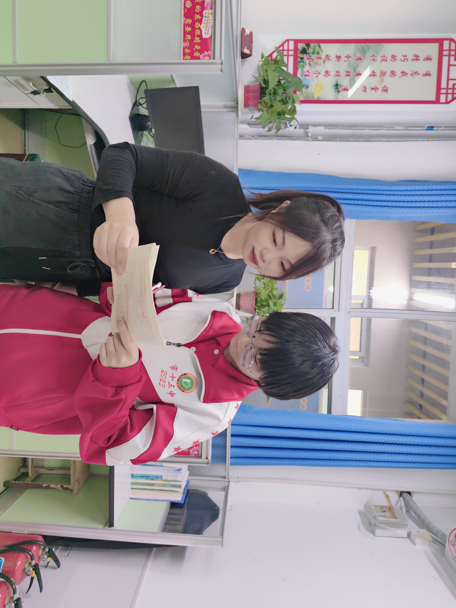 高雅娜老师正在给学生讲解问题。
