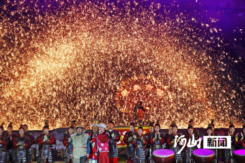 蔚县暖泉古镇日间活动以“秧歌神韵·民俗华章”为主题,威风锣鼓、舞龙舞狮、花车等传统民俗社火活动,现场的游客可触可感可互动,沉浸式体验中国年味儿,西古堡双耳戏楼上演传统戏曲,经典曲目接连不断,尽显蔚县秧歌魅力。入夜后,大型实景演艺《燕云十六州·梦回蔚州》,舞台效果绚丽,带领游客穿越时空,感受蔚州地区的历史变迁,树花广场上,国家级非物质文化遗产打树花在这里绽放,1600℃铁水泼洒而出,层层飞花如瀑布倾泻,点亮夜空,令人叹为观止。春节期间,暖泉古西古堡村单日最高接待量突破2.3万人次。