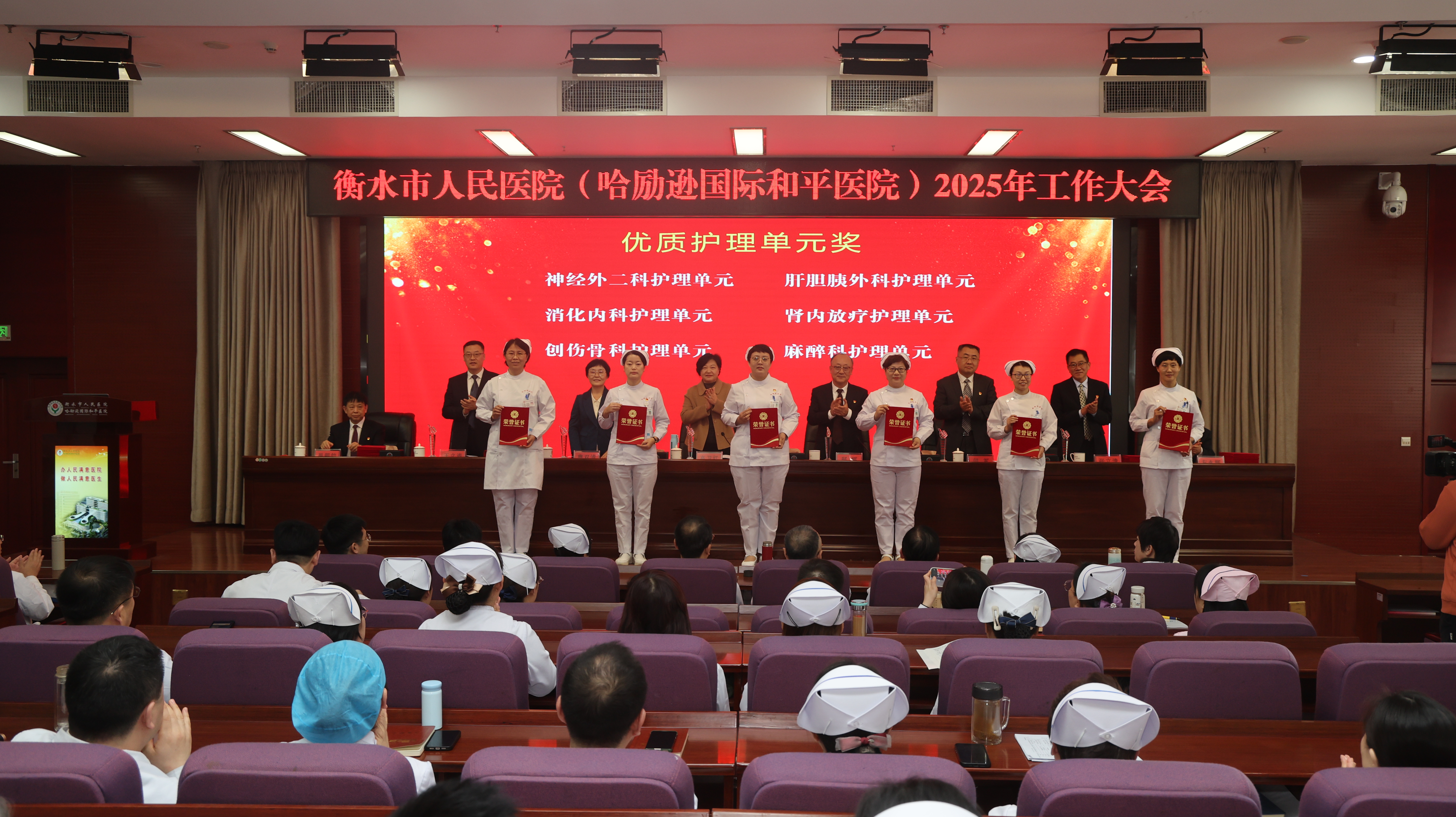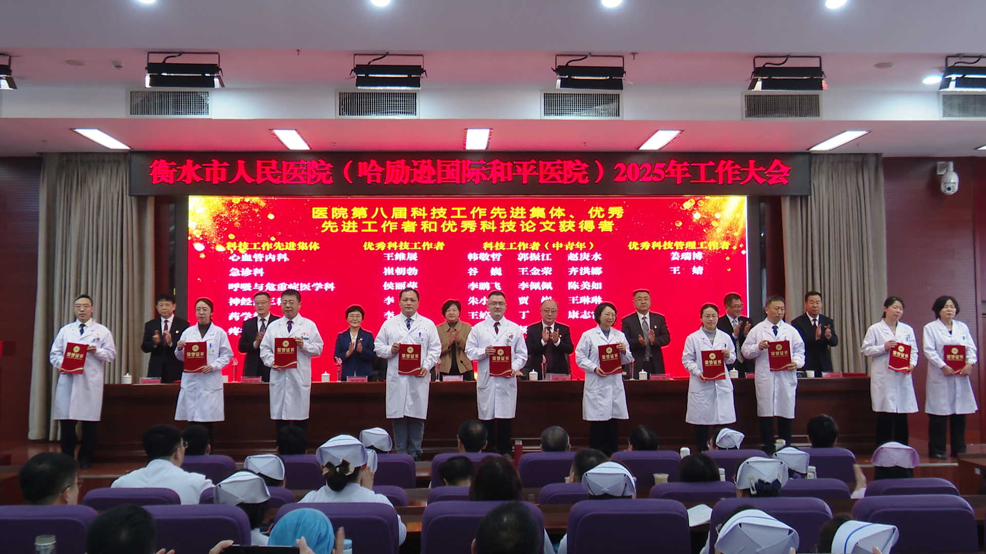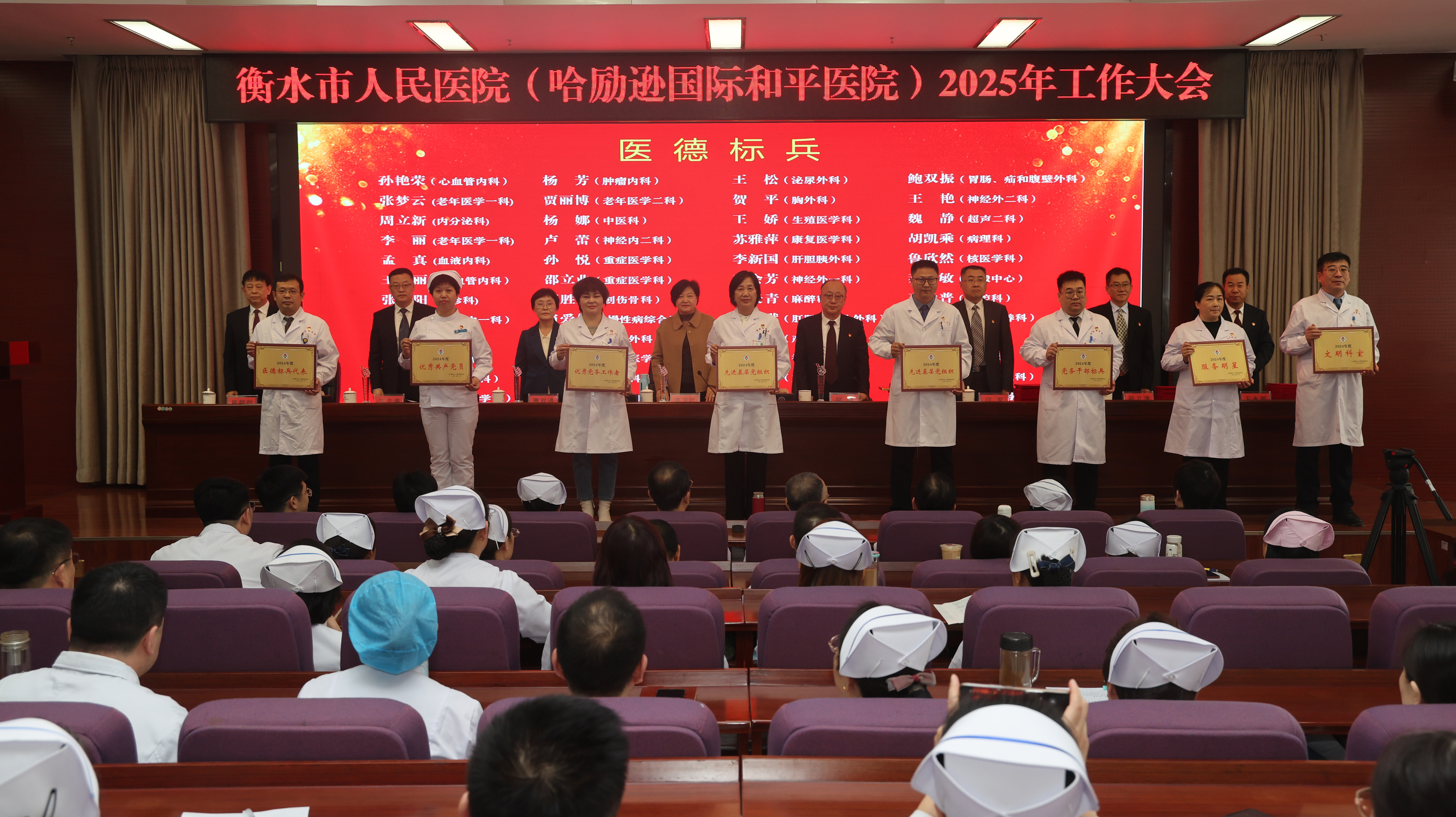 3月1日下午,衡水市人民医院(哈励逊国际和平医院)召开2025年工作大会,结合对国家政策动向的适时关注和对自身发展实际的精准把握,总结2024年工作,部署2025年任务,表彰先进典型,凝聚榜样力量,奋力推动高质量发展向上突围。