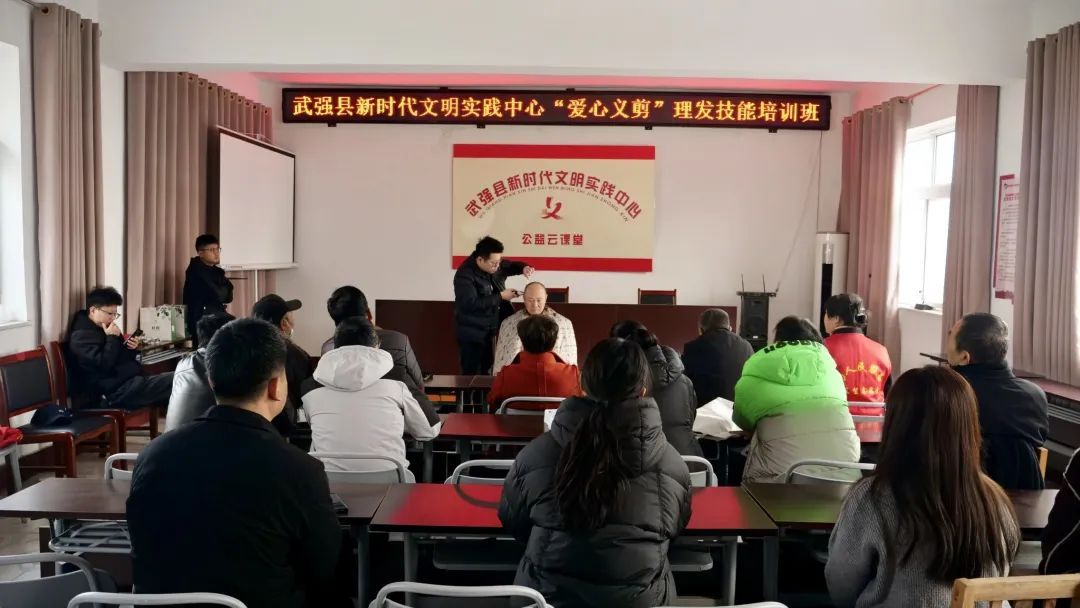 近日,武强县新时代文明实践中心内热闹非凡,一场旨在关爱乡村老人的“爱心义剪”理发技能培训在这里举行。